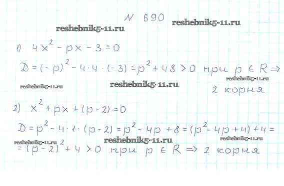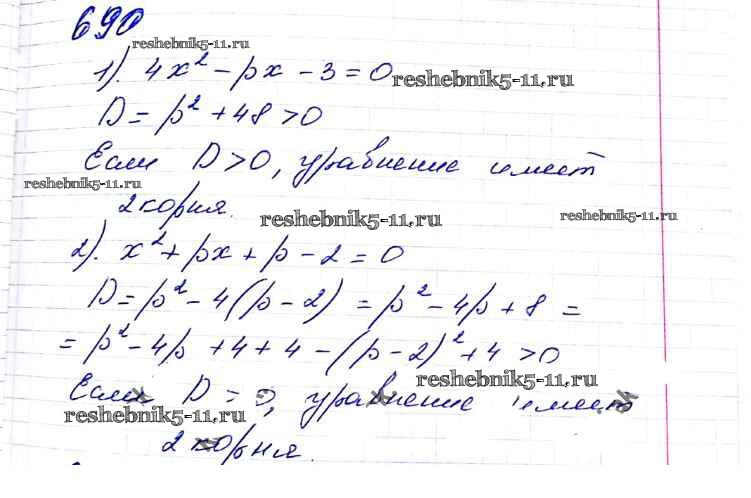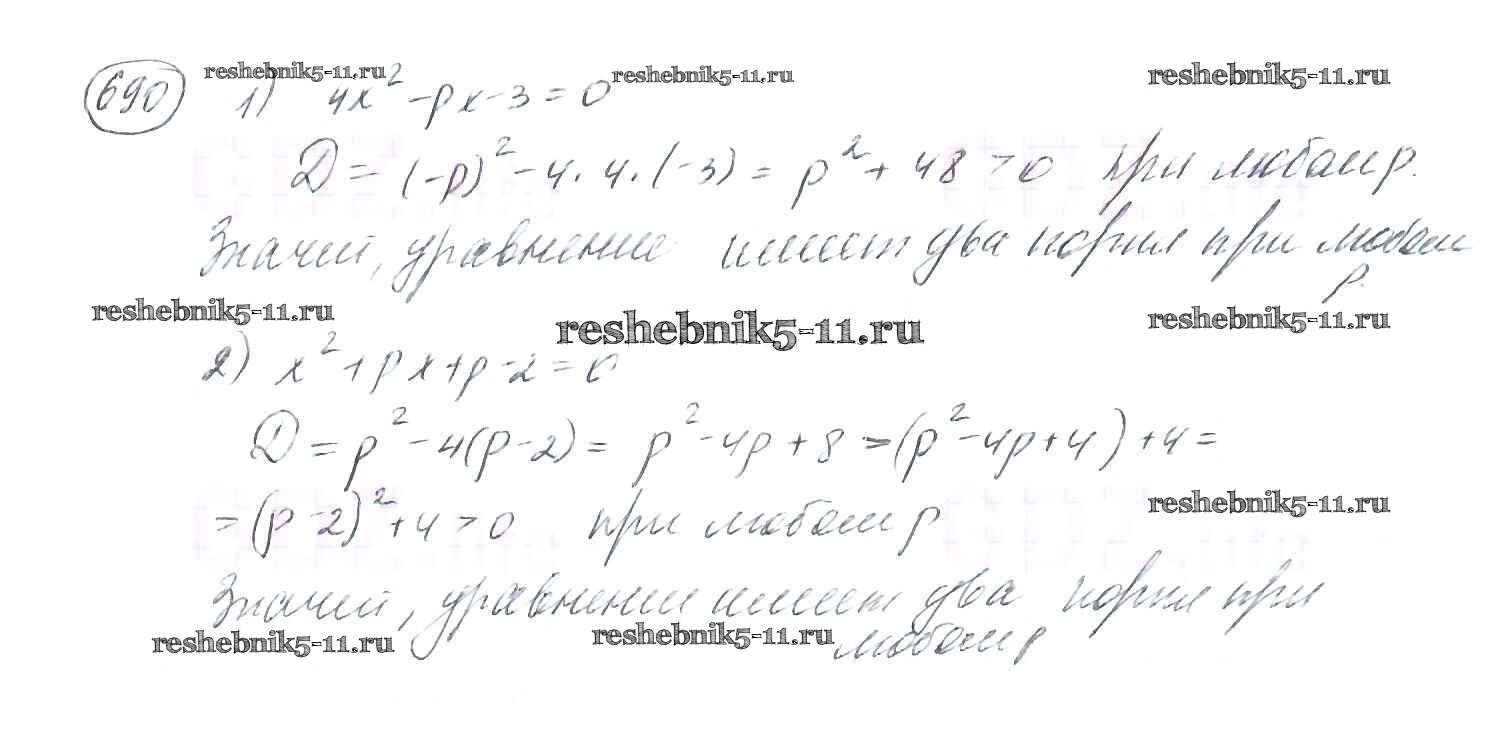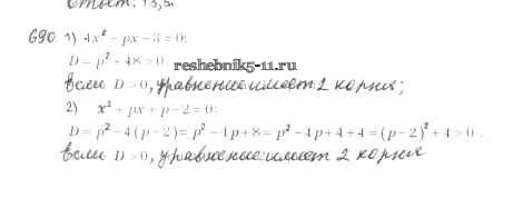 Готовая домашняя работа с ответами по Алгебре за 8 класс Мерзляк, Полонский, Якир Учебник Алгоритм успеха Вентана-граф 2016 ФГОС - §20. Формула корней квадратного уравнения 690