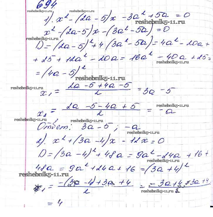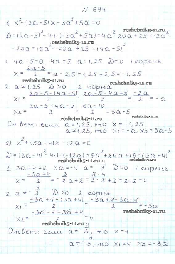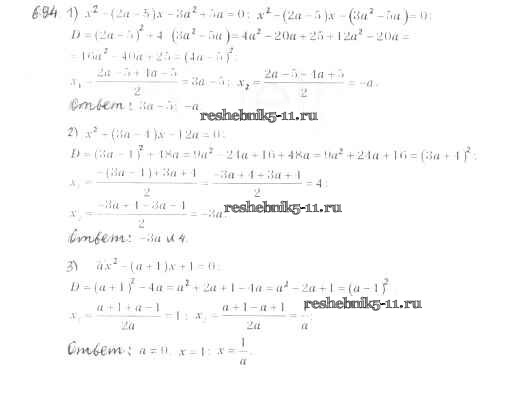 Готовая домашняя работа с ответами по Алгебре за 8 класс Мерзляк, Полонский, Якир Учебник Алгоритм успеха Вентана-граф 2016 ФГОС - §20. Формула корней квадратного уравнения 694