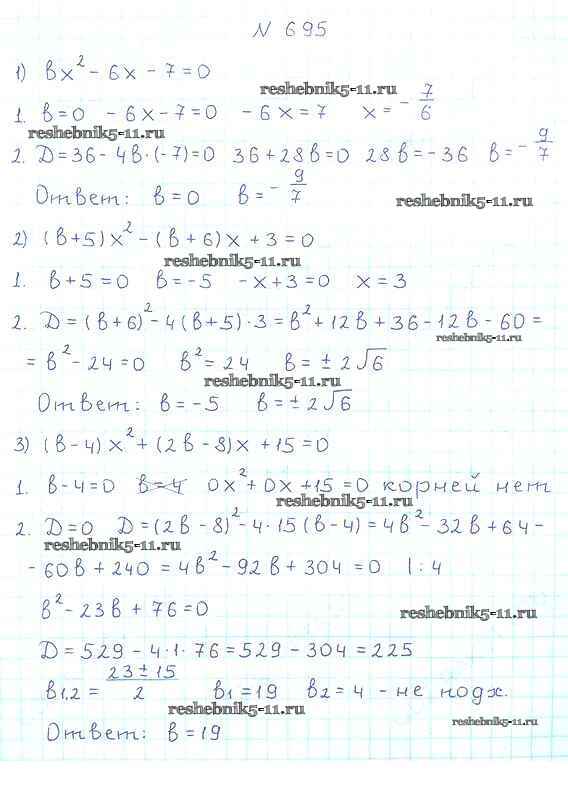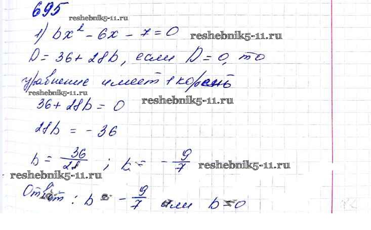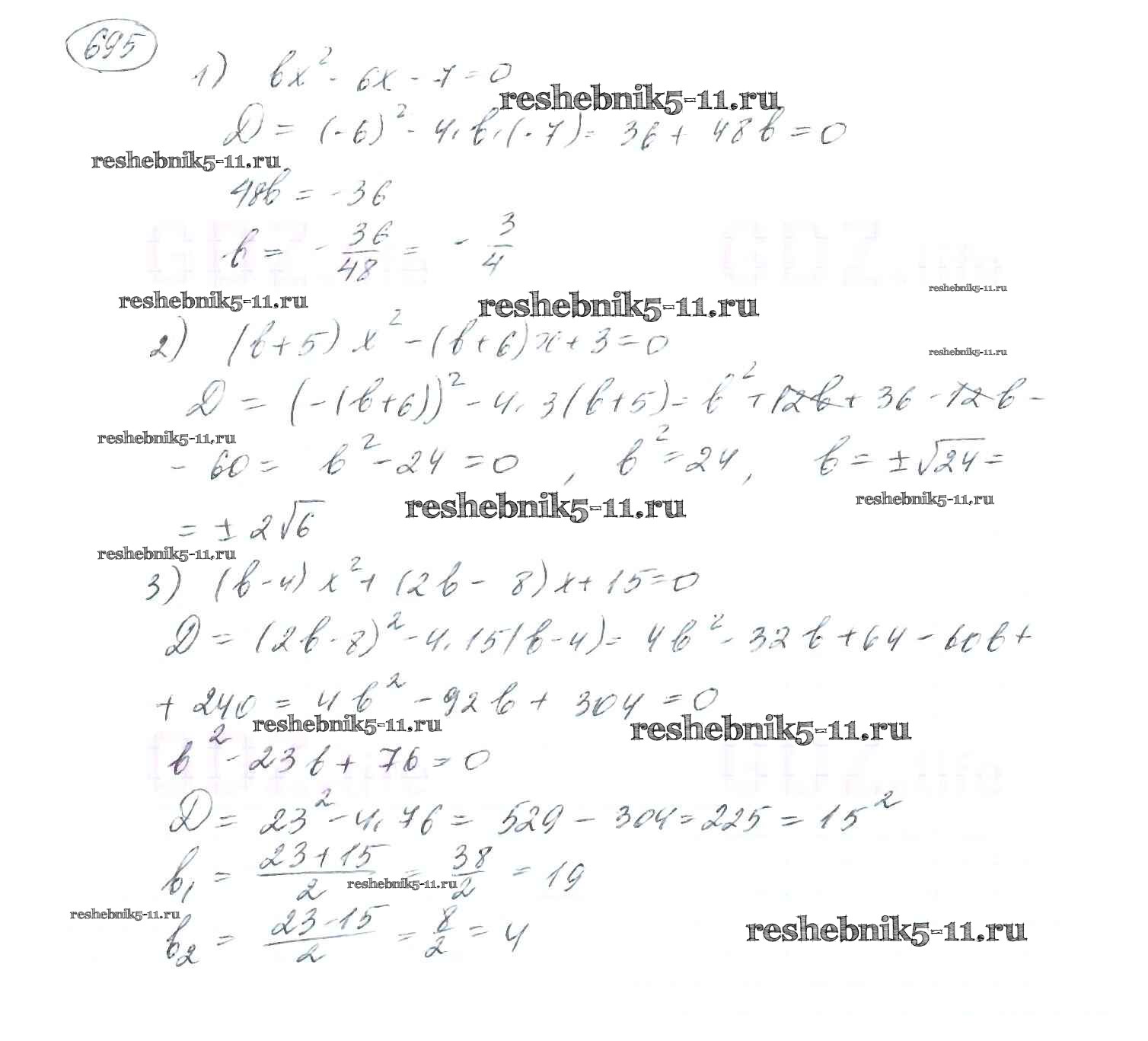 Готовая домашняя работа с ответами по Алгебре за 8 класс Мерзляк, Полонский, Якир Учебник Алгоритм успеха Вентана-граф 2016 ФГОС - §20. Формула корней квадратного уравнения 695