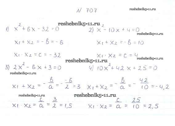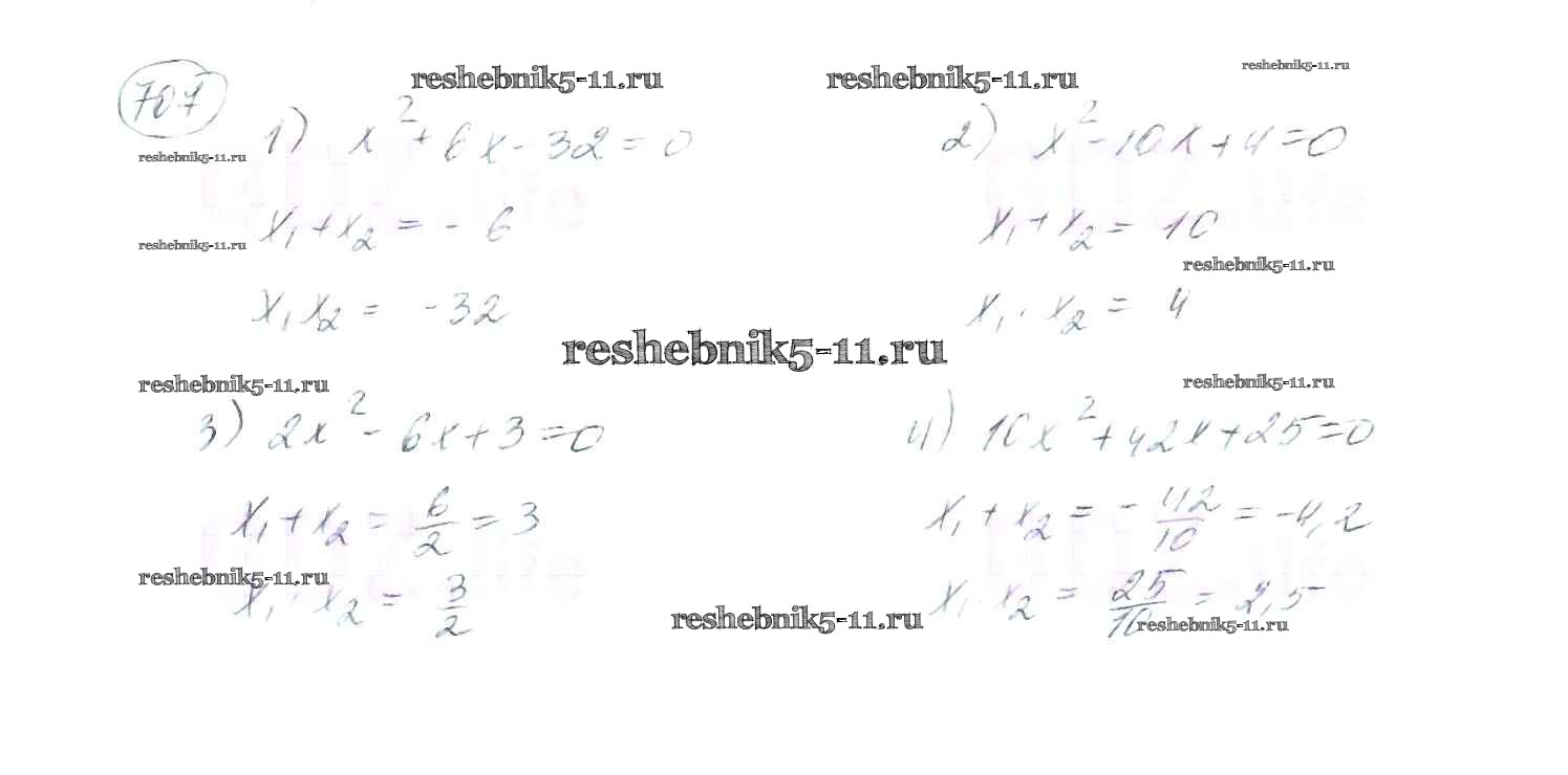 Готовая домашняя работа с ответами по Алгебре за 8 класс Мерзляк, Полонский, Якир Учебник Алгоритм успеха Вентана-граф 2016 ФГОС - §21. Теорема Виета 707