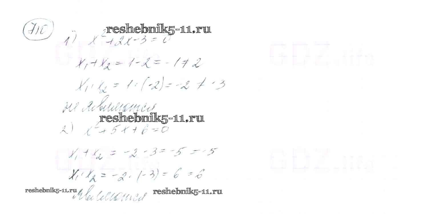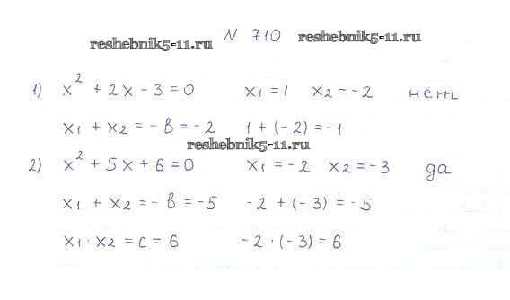 Готовая домашняя работа с ответами по Алгебре за 8 класс Мерзляк, Полонский, Якир Учебник Алгоритм успеха Вентана-граф 2016 ФГОС - §21. Теорема Виета 710