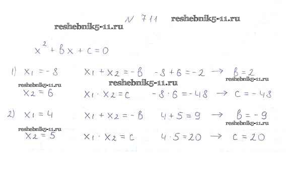 Готовая домашняя работа с ответами по Алгебре за 8 класс Мерзляк, Полонский, Якир Учебник Алгоритм успеха Вентана-граф 2016 ФГОС - §21. Теорема Виета 711