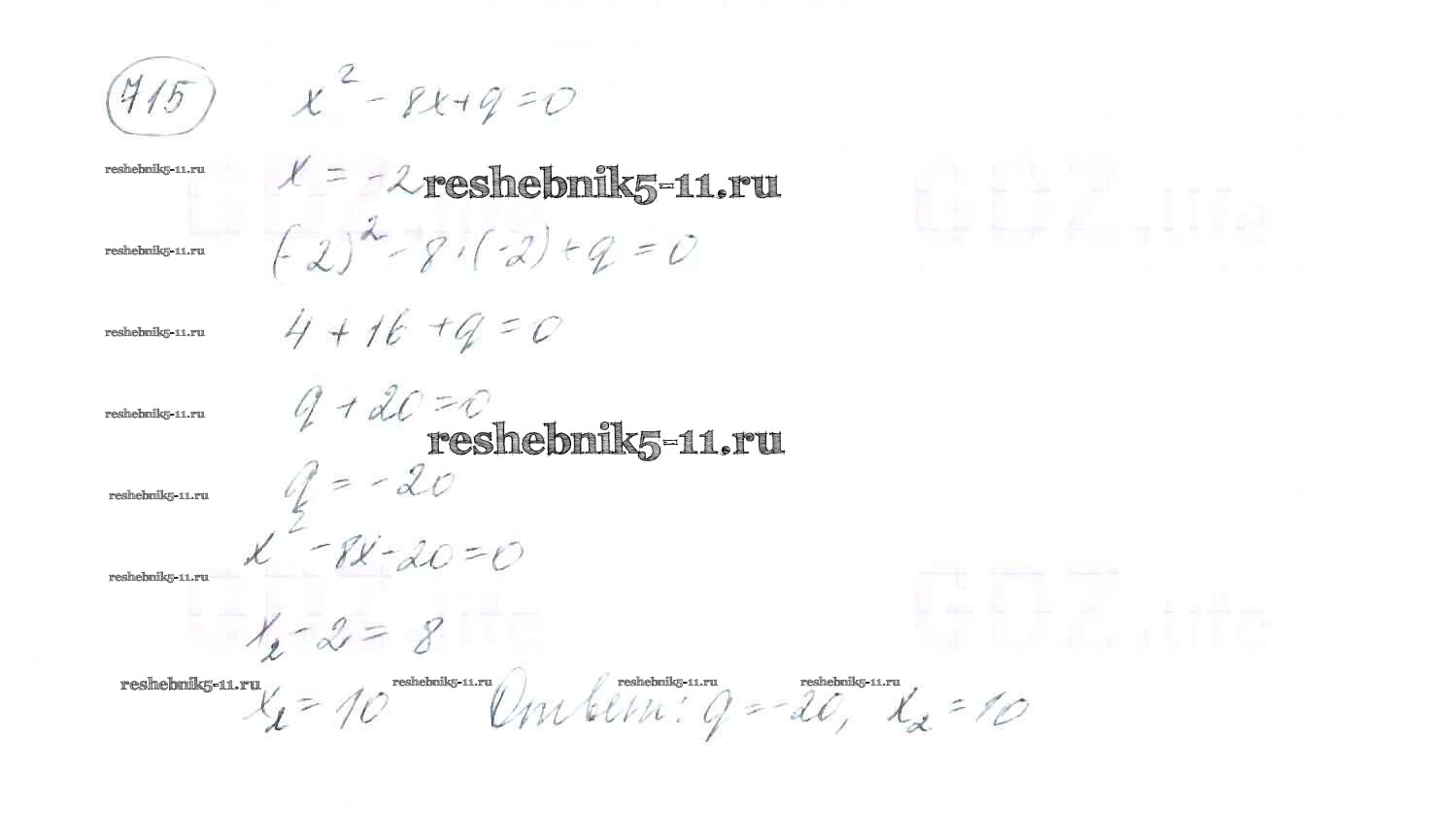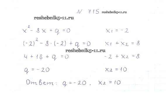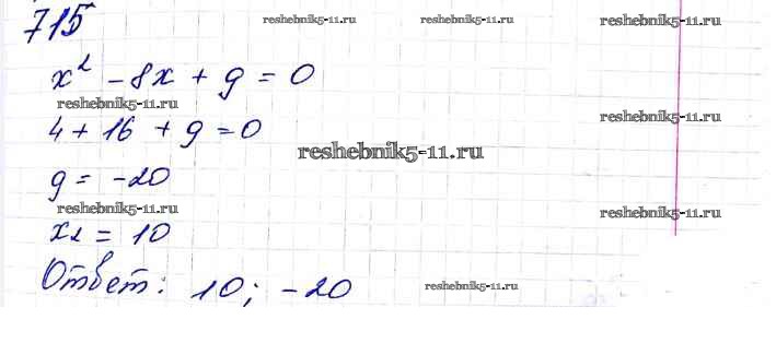 Готовая домашняя работа с ответами по Алгебре за 8 класс Мерзляк, Полонский, Якир Учебник Алгоритм успеха Вентана-граф 2016 ФГОС - §21. Теорема Виета 715