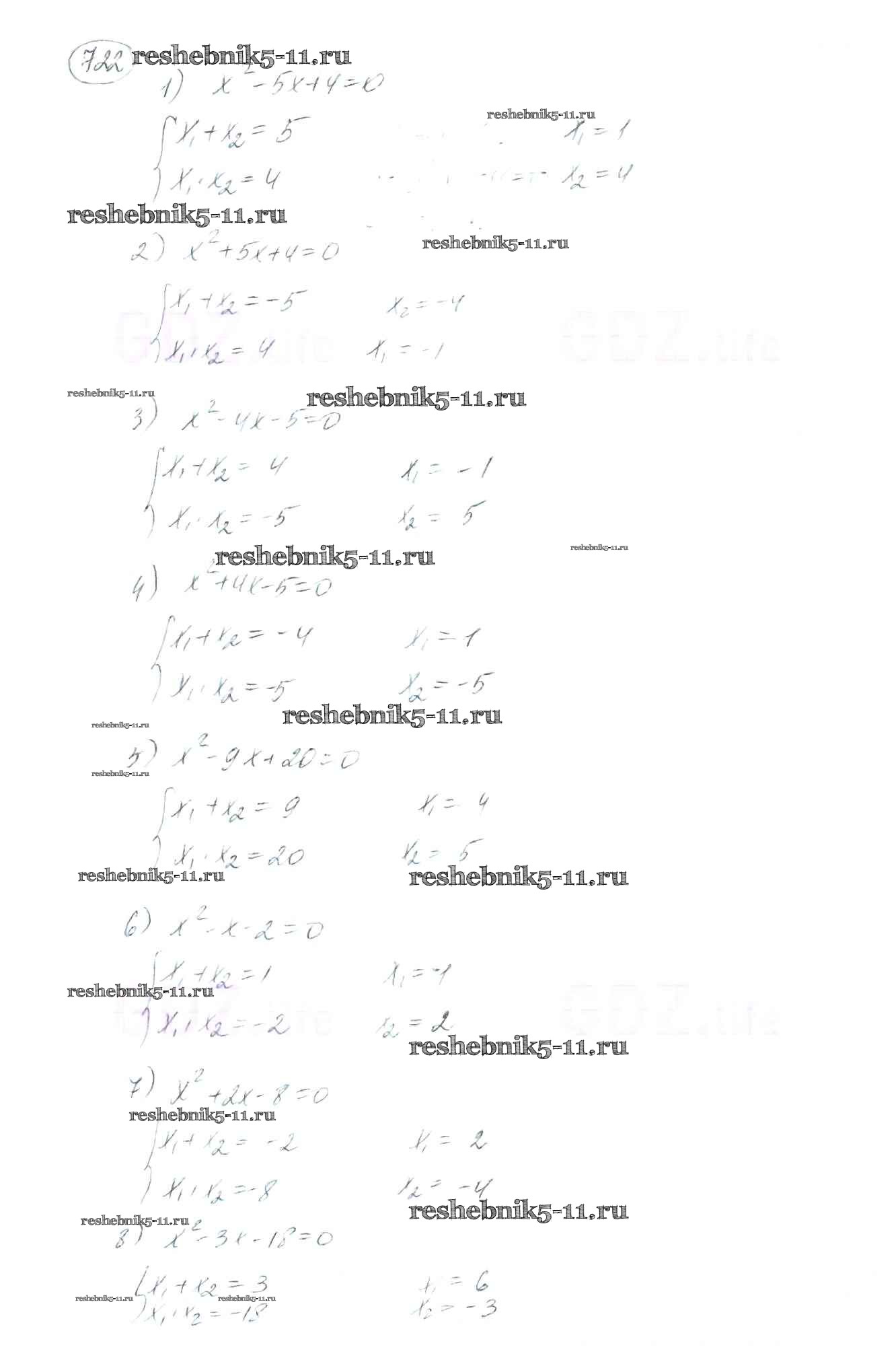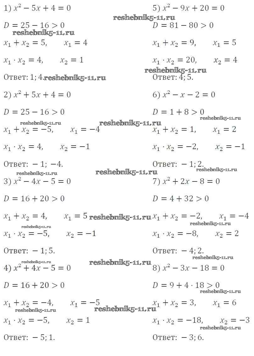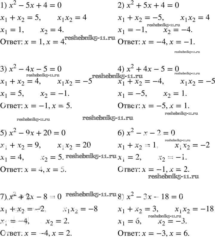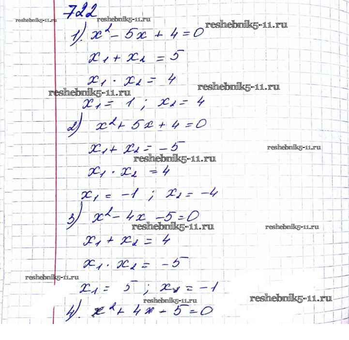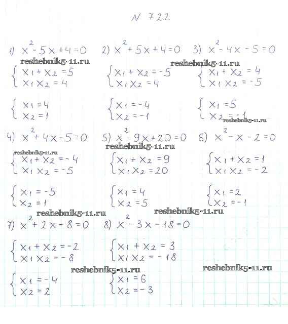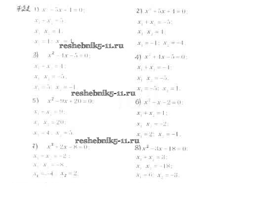 Готовая домашняя работа с ответами по Алгебре за 8 класс Мерзляк, Полонский, Якир Учебник Алгоритм успеха Вентана-граф 2016 ФГОС - §21. Теорема Виета 722