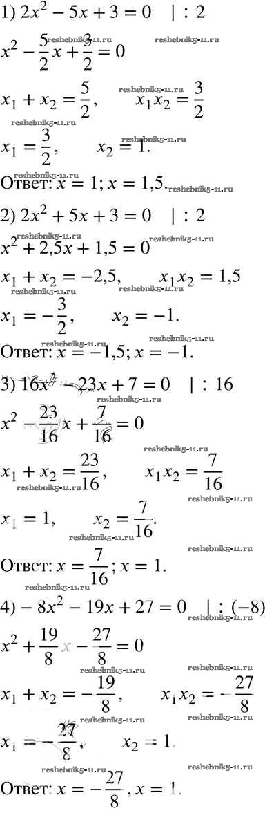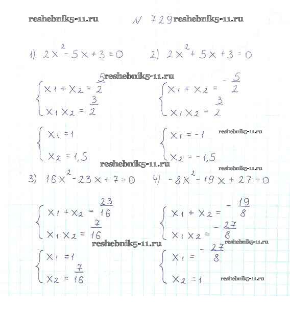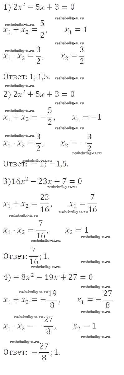 Готовая домашняя работа с ответами по Алгебре за 8 класс Мерзляк, Полонский, Якир Учебник Алгоритм успеха Вентана-граф 2016 ФГОС - §21. Теорема Виета 729