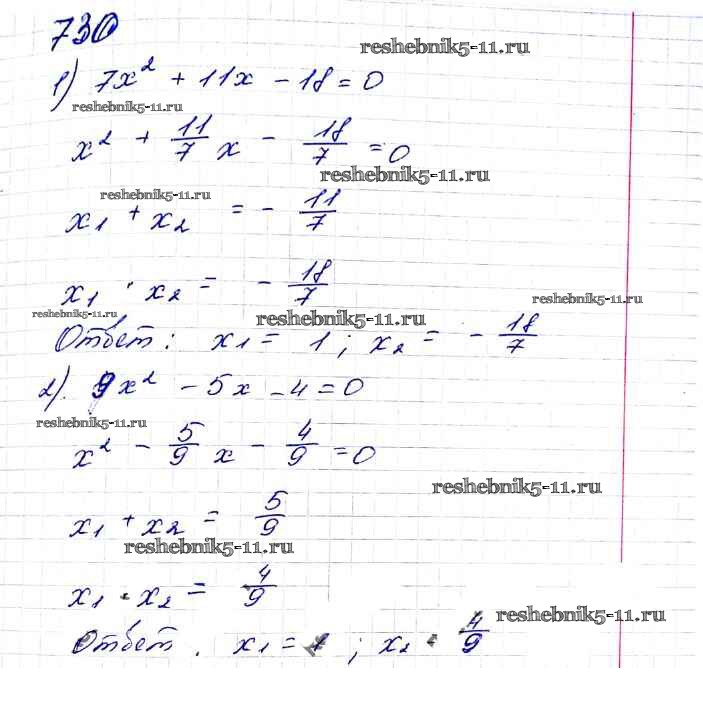 Готовая домашняя работа с ответами по Алгебре за 8 класс Мерзляк, Полонский, Якир Учебник Алгоритм успеха Вентана-граф 2016 ФГОС - §21. Теорема Виета 730