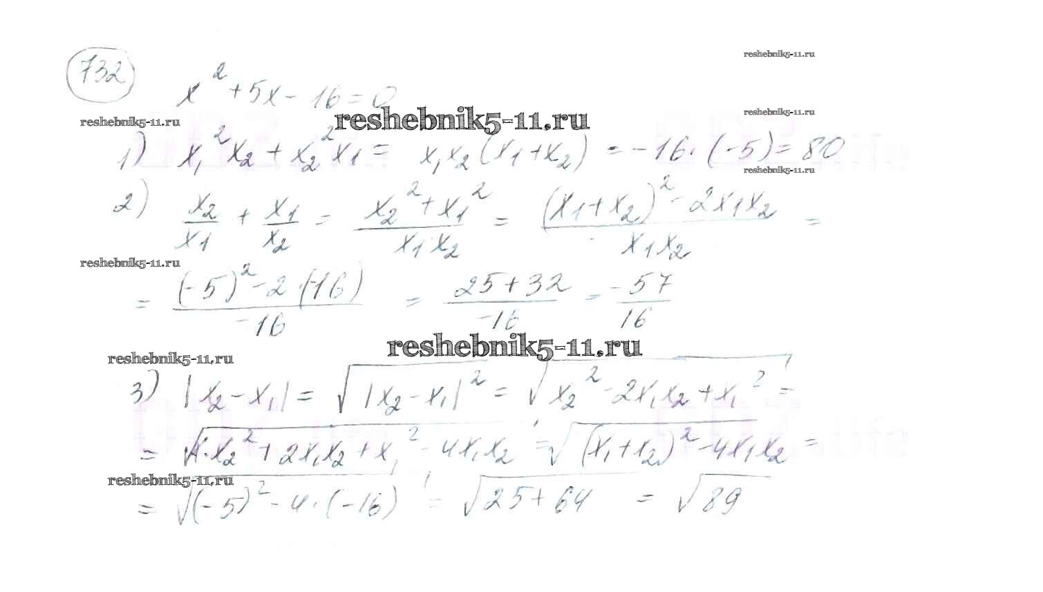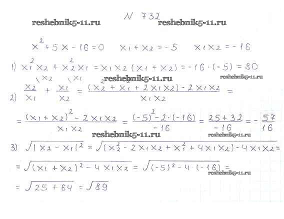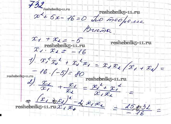 Готовая домашняя работа с ответами по Алгебре за 8 класс Мерзляк, Полонский, Якир Учебник Алгоритм успеха Вентана-граф 2016 ФГОС - §21. Теорема Виета 732