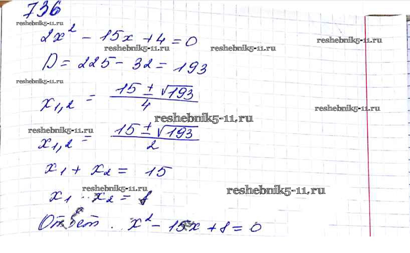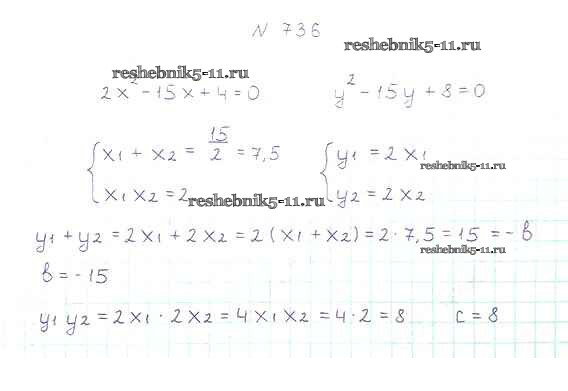 Готовая домашняя работа с ответами по Алгебре за 8 класс Мерзляк, Полонский, Якир Учебник Алгоритм успеха Вентана-граф 2016 ФГОС - §21. Теорема Виета 736