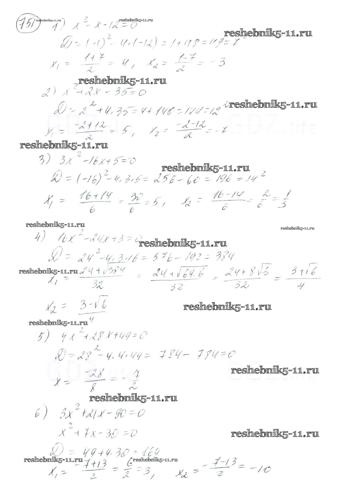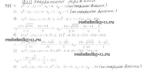 Готовая домашняя работа с ответами по Алгебре за 8 класс Мерзляк, Полонский, Якир Учебник Алгоритм успеха Вентана-граф 2016 ФГОС - §22. Квадратный трёхчлен 751