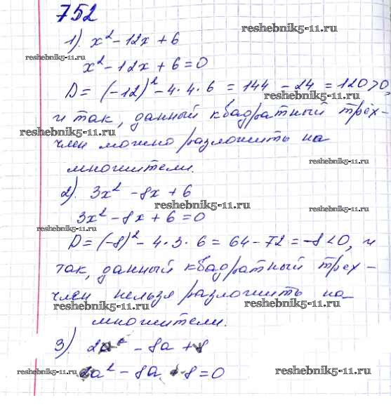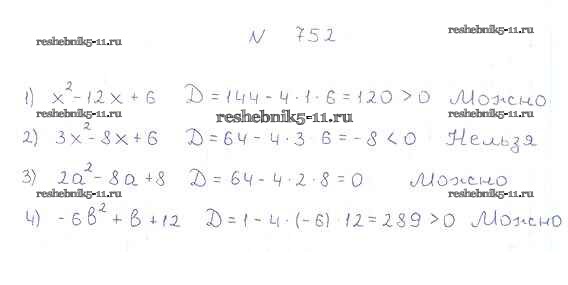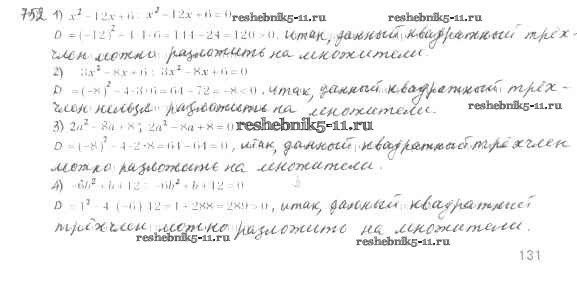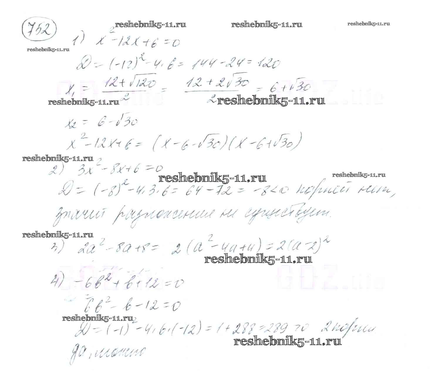 Готовая домашняя работа с ответами по Алгебре за 8 класс Мерзляк, Полонский, Якир Учебник Алгоритм успеха Вентана-граф 2016 ФГОС - §22. Квадратный трёхчлен 752