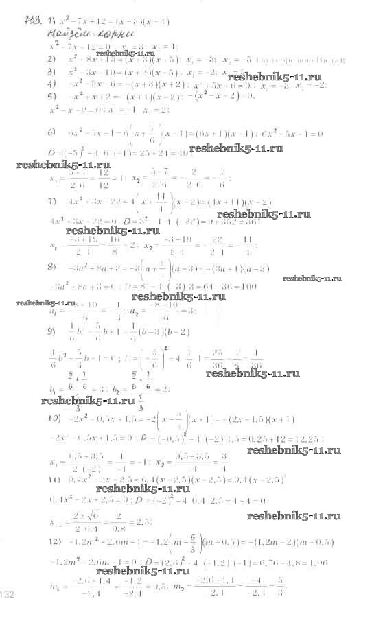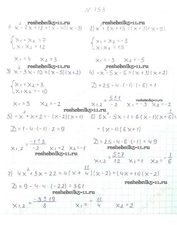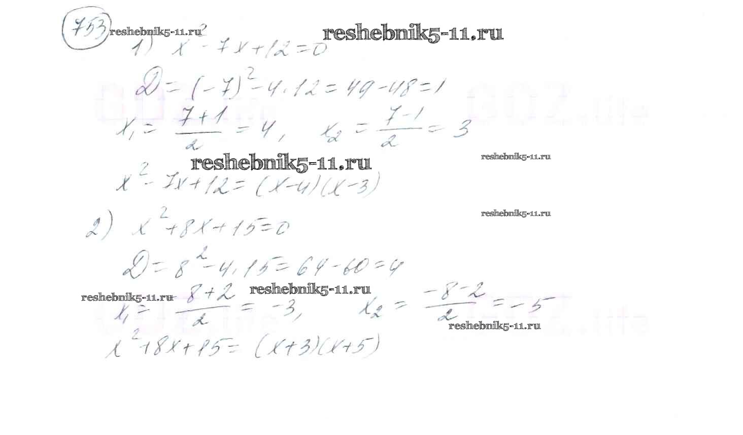 Готовая домашняя работа с ответами по Алгебре за 8 класс Мерзляк, Полонский, Якир Учебник Алгоритм успеха Вентана-граф 2016 ФГОС - §22. Квадратный трёхчлен 753