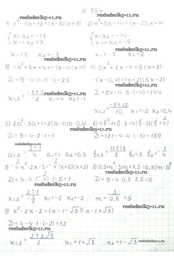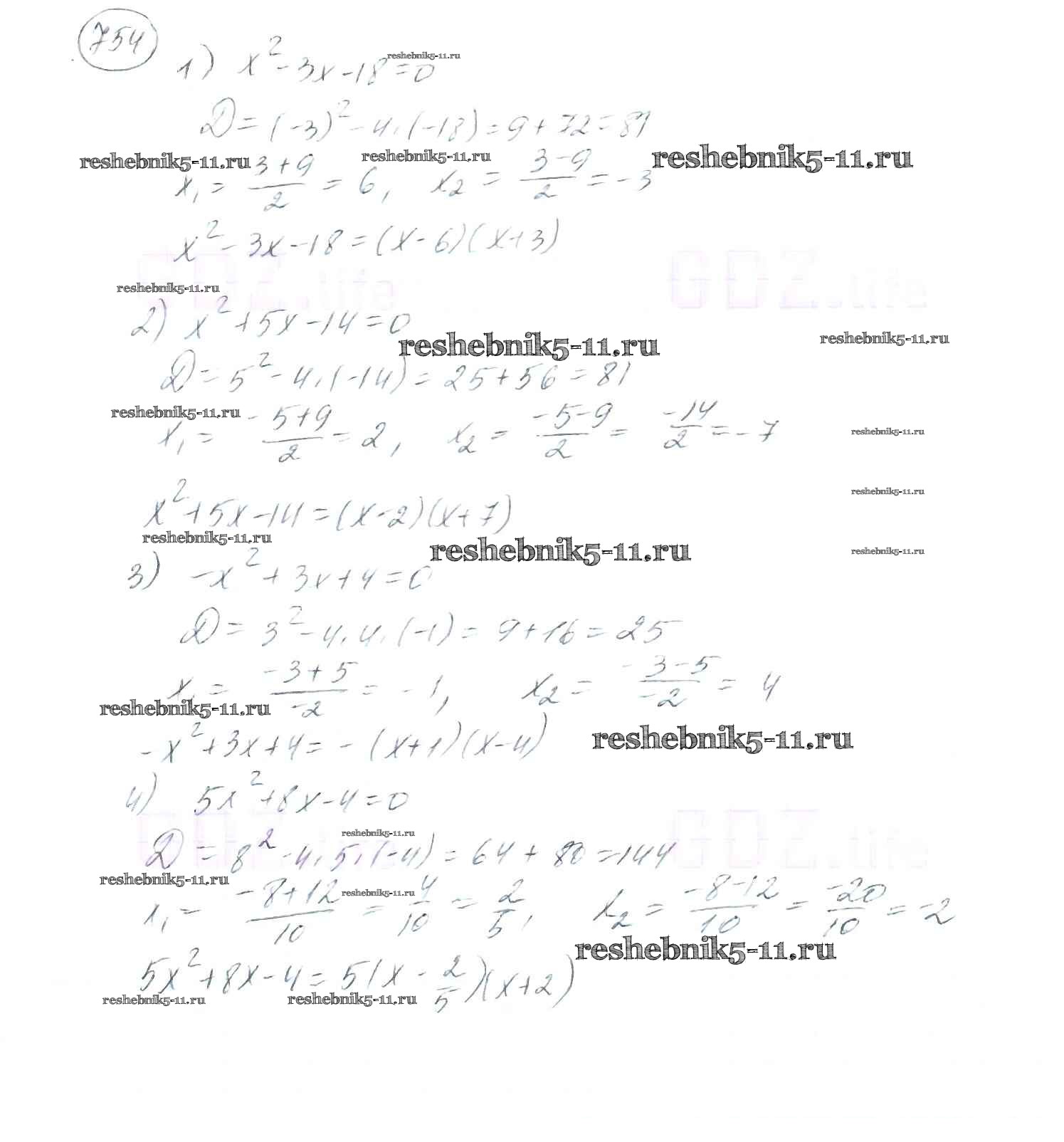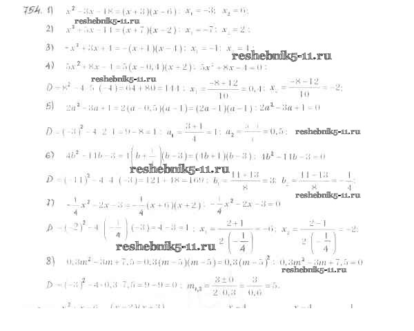Готовая домашняя работа с ответами по Алгебре за 8 класс Мерзляк, Полонский, Якир Учебник Алгоритм успеха Вентана-граф 2016 ФГОС - §22. Квадратный трёхчлен 754