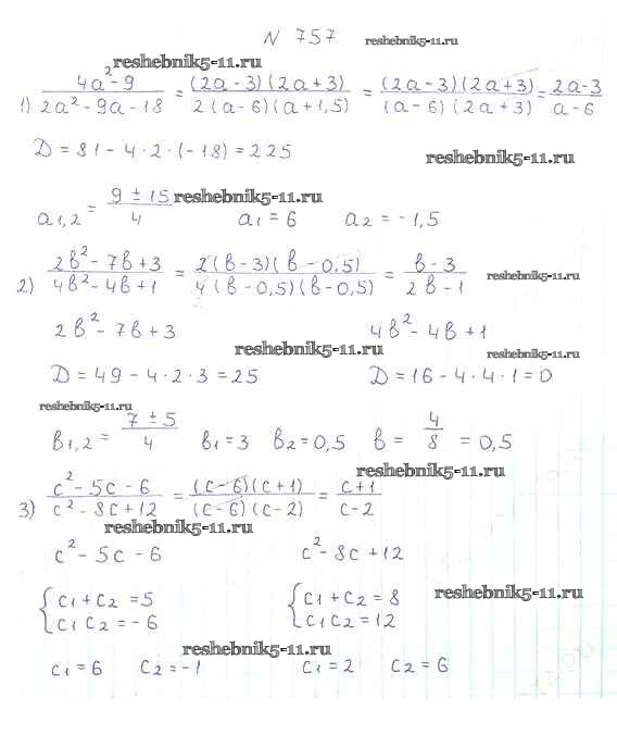 Готовая домашняя работа с ответами по Алгебре за 8 класс Мерзляк, Полонский, Якир Учебник Алгоритм успеха Вентана-граф 2016 ФГОС - §22. Квадратный трёхчлен 757