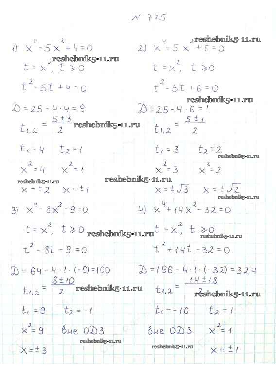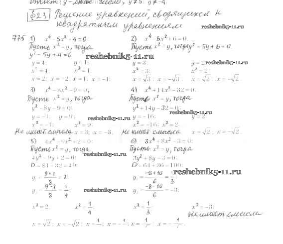 Готовая домашняя работа с ответами по Алгебре за 8 класс Мерзляк, Полонский, Якир Учебник Алгоритм успеха Вентана-граф 2016 ФГОС - §23. Решение уравнений, сводящихся к квадратным уравнениям 775