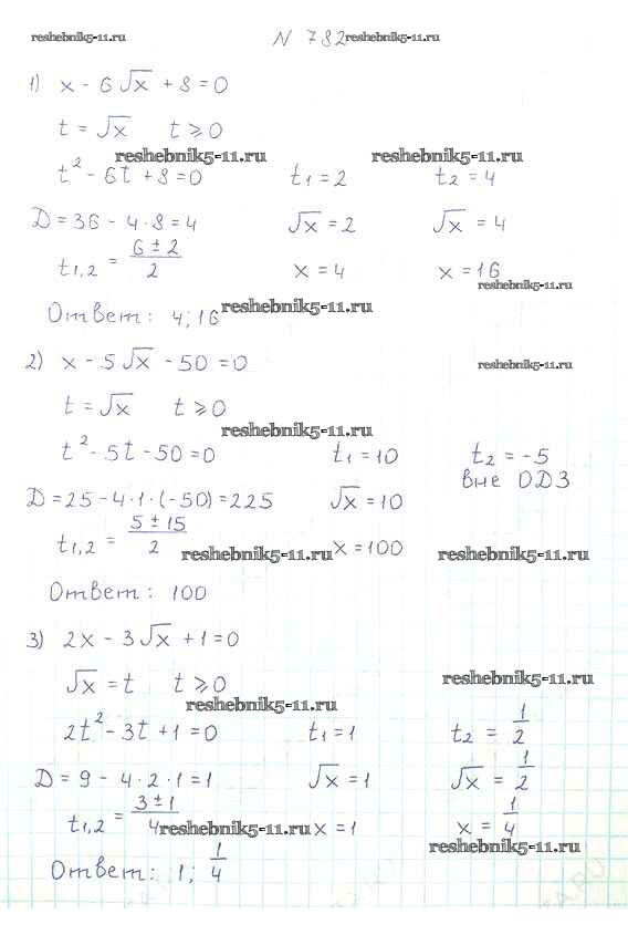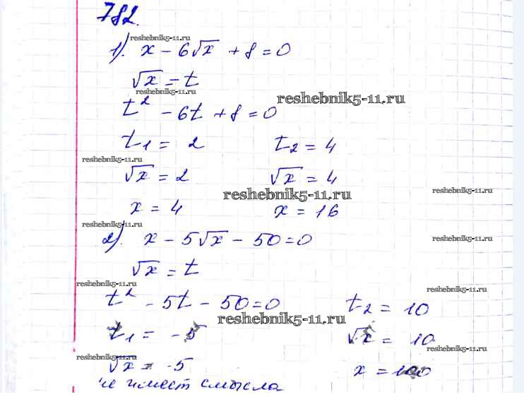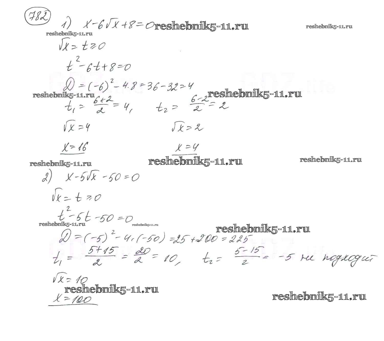 Готовая домашняя работа с ответами по Алгебре за 8 класс Мерзляк, Полонский, Якир Учебник Алгоритм успеха Вентана-граф 2016 ФГОС - §23. Решение уравнений, сводящихся к квадратным уравнениям 782