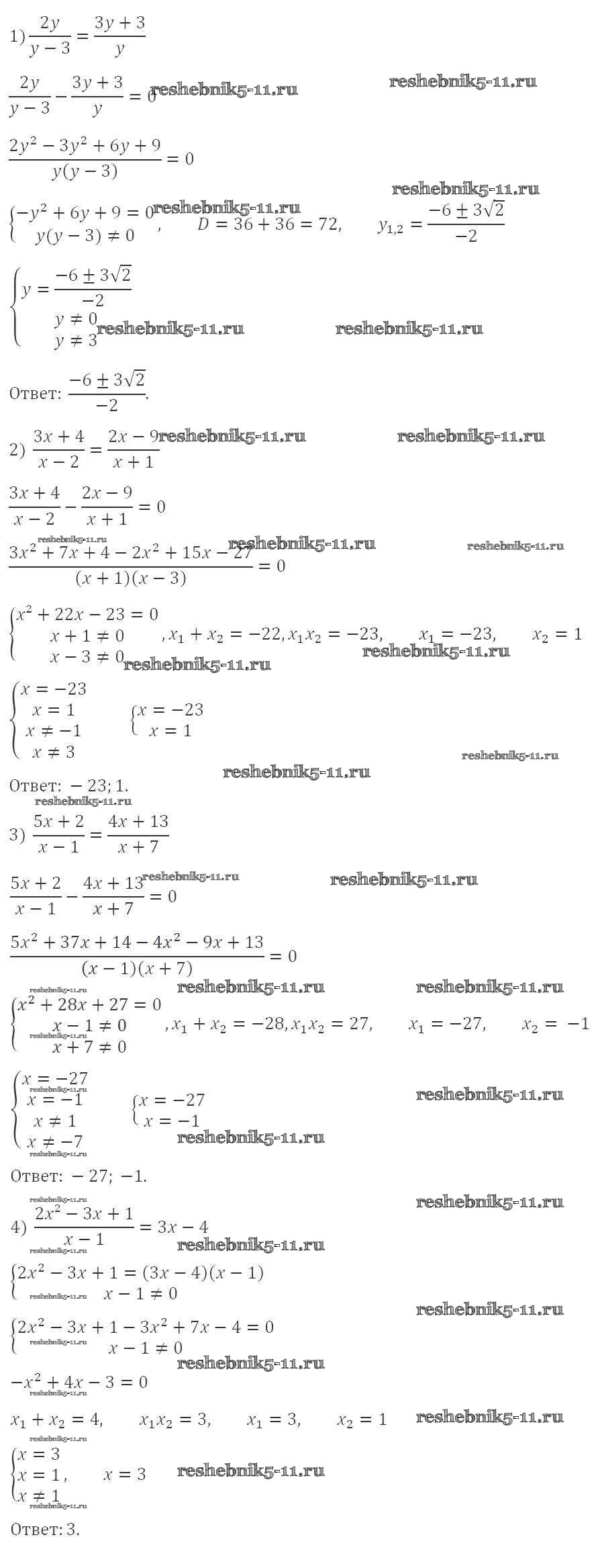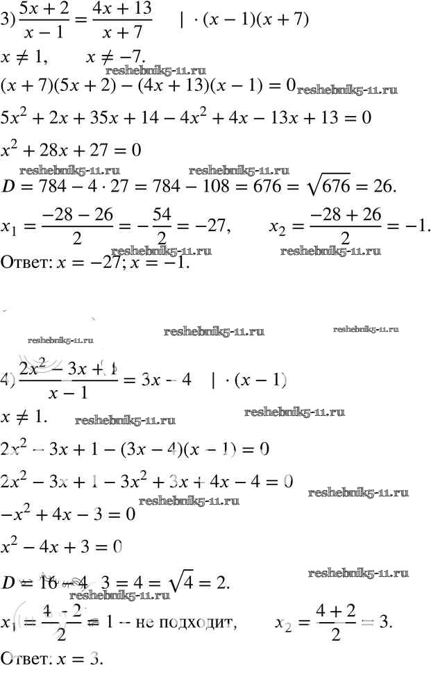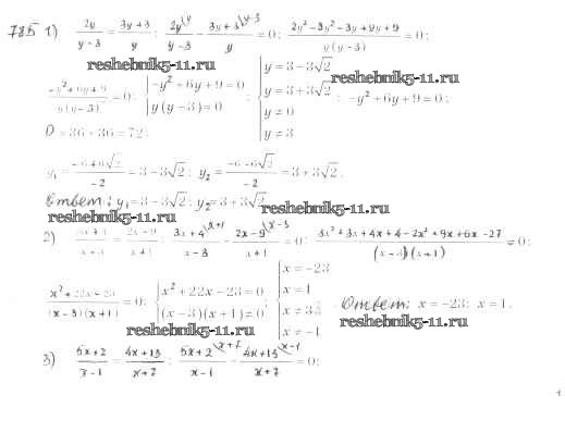 Готовая домашняя работа с ответами по Алгебре за 8 класс Мерзляк, Полонский, Якир Учебник Алгоритм успеха Вентана-граф 2016 ФГОС - §23. Решение уравнений, сводящихся к квадратным уравнениям 785