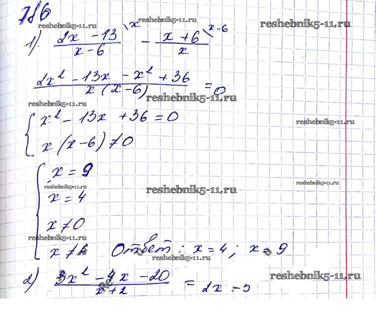 Готовая домашняя работа с ответами по Алгебре за 8 класс Мерзляк, Полонский, Якир Учебник Алгоритм успеха Вентана-граф 2016 ФГОС - §23. Решение уравнений, сводящихся к квадратным уравнениям 786