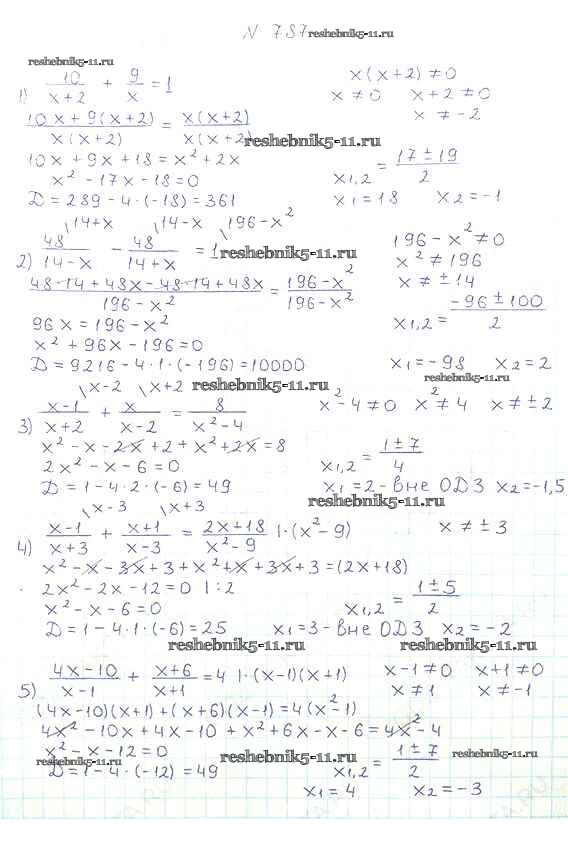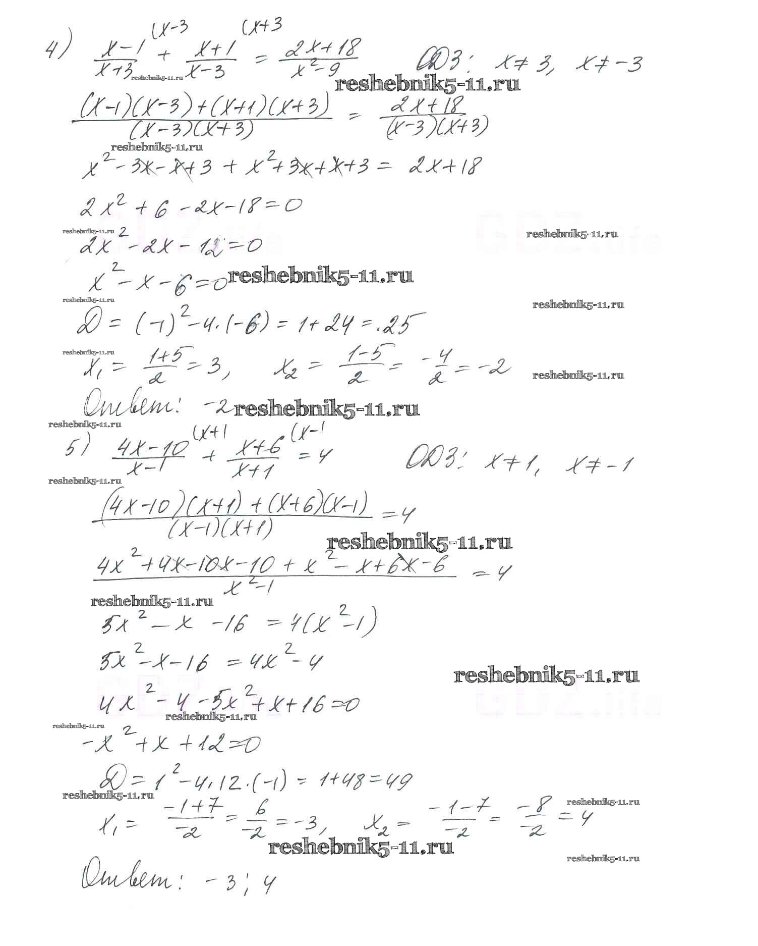 Готовая домашняя работа с ответами по Алгебре за 8 класс Мерзляк, Полонский, Якир Учебник Алгоритм успеха Вентана-граф 2016 ФГОС - §23. Решение уравнений, сводящихся к квадратным уравнениям 787