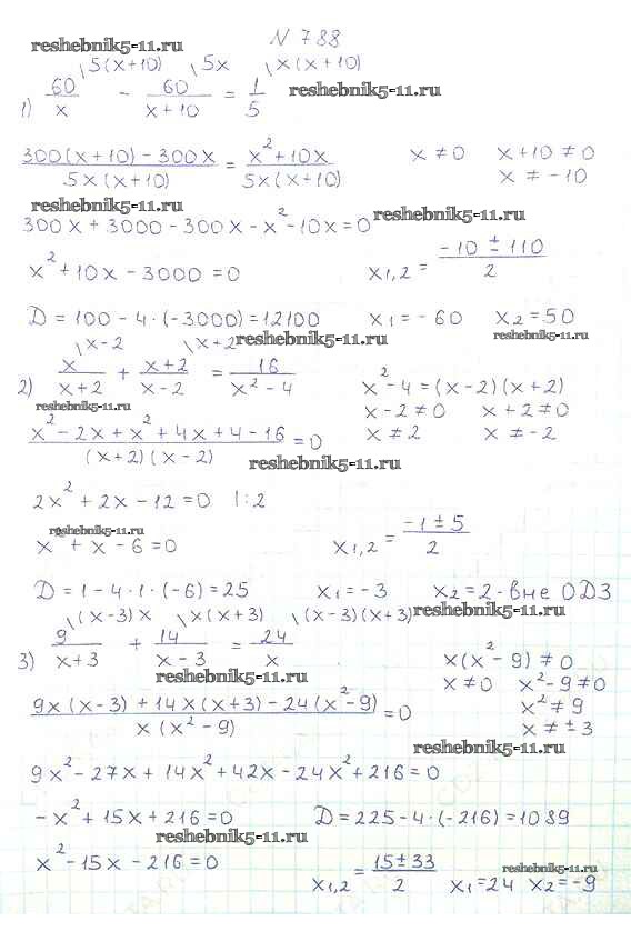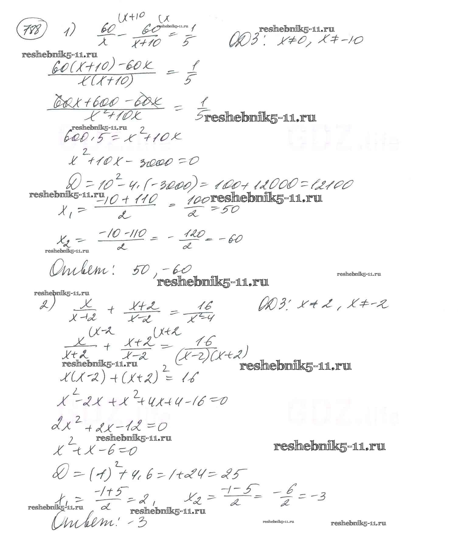 Готовая домашняя работа с ответами по Алгебре за 8 класс Мерзляк, Полонский, Якир Учебник Алгоритм успеха Вентана-граф 2016 ФГОС - §23. Решение уравнений, сводящихся к квадратным уравнениям 788