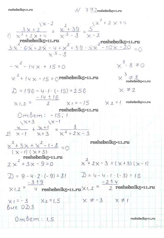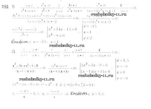 Готовая домашняя работа с ответами по Алгебре за 8 класс Мерзляк, Полонский, Якир Учебник Алгоритм успеха Вентана-граф 2016 ФГОС - §23. Решение уравнений, сводящихся к квадратным уравнениям 792