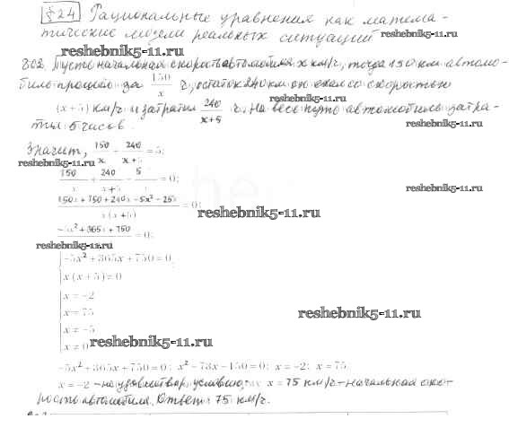 Готовая домашняя работа с ответами по Алгебре за 8 класс Мерзляк, Полонский, Якир Учебник Алгоритм успеха Вентана-граф 2016 ФГОС - §24. Рациональные уравнения как математические модели реальных ситуаций 802