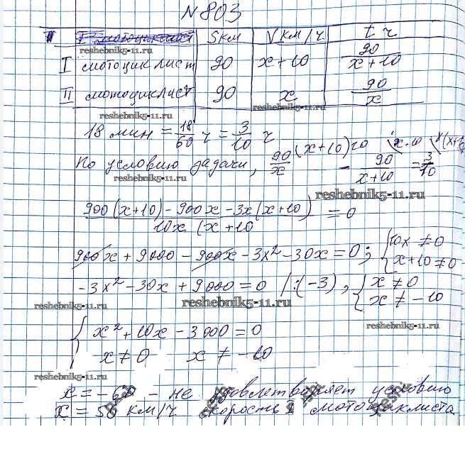 Готовая домашняя работа с ответами по Алгебре за 8 класс Мерзляк, Полонский, Якир Учебник Алгоритм успеха Вентана-граф 2016 ФГОС - §24. Рациональные уравнения как математические модели реальных ситуаций 803