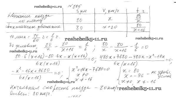 Готовая домашняя работа с ответами по Алгебре за 8 класс Мерзляк, Полонский, Якир Учебник Алгоритм успеха Вентана-граф 2016 ФГОС - §24. Рациональные уравнения как математические модели реальных ситуаций 805