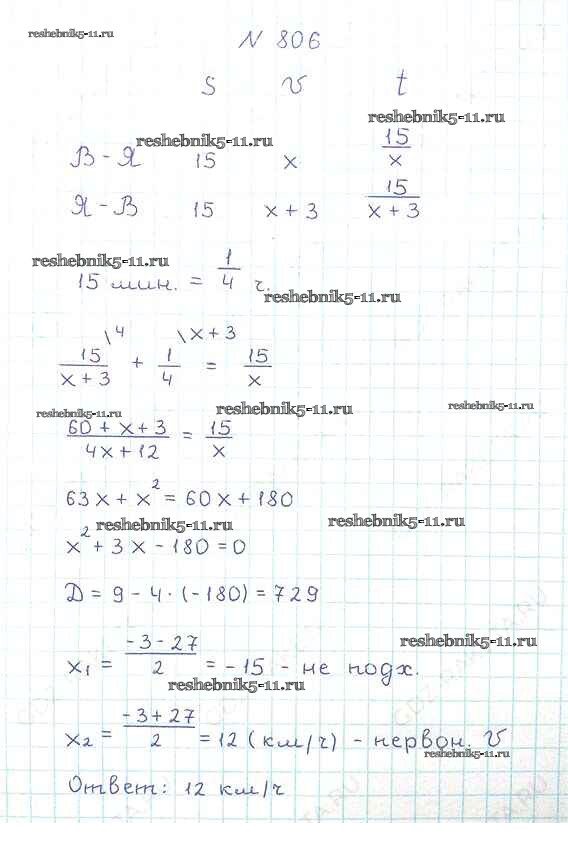 Готовая домашняя работа с ответами по Алгебре за 8 класс Мерзляк, Полонский, Якир Учебник Алгоритм успеха Вентана-граф 2016 ФГОС - §24. Рациональные уравнения как математические модели реальных ситуаций 806