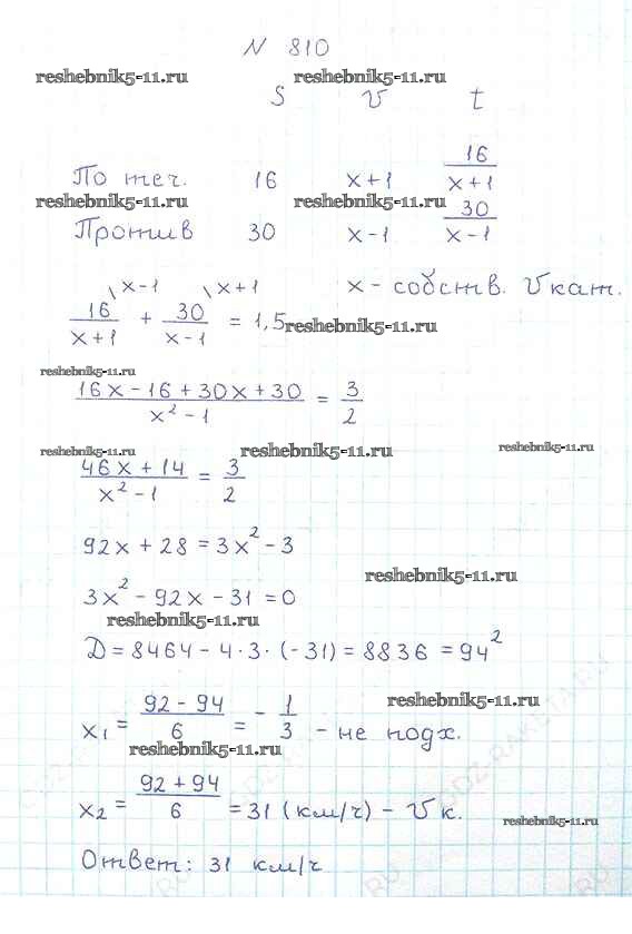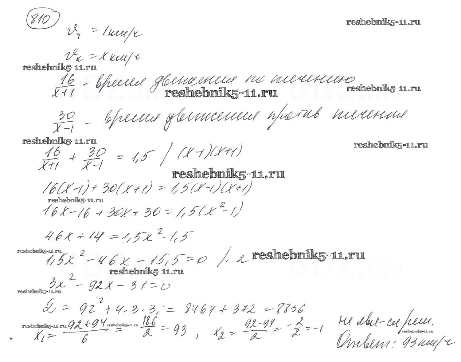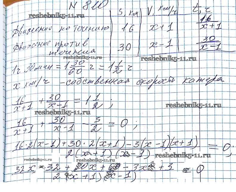 Готовая домашняя работа с ответами по Алгебре за 8 класс Мерзляк, Полонский, Якир Учебник Алгоритм успеха Вентана-граф 2016 ФГОС - §24. Рациональные уравнения как математические модели реальных ситуаций 810