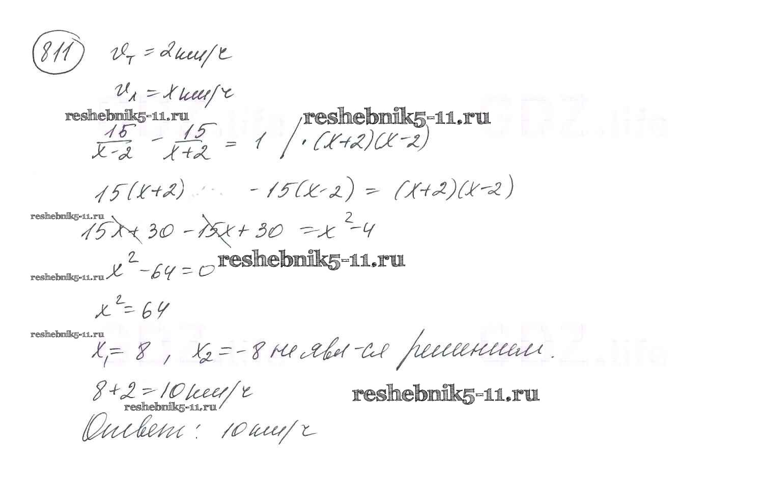 Готовая домашняя работа с ответами по Алгебре за 8 класс Мерзляк, Полонский, Якир Учебник Алгоритм успеха Вентана-граф 2016 ФГОС - §24. Рациональные уравнения как математические модели реальных ситуаций 811