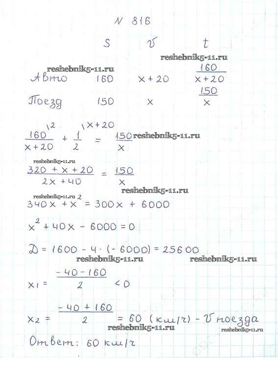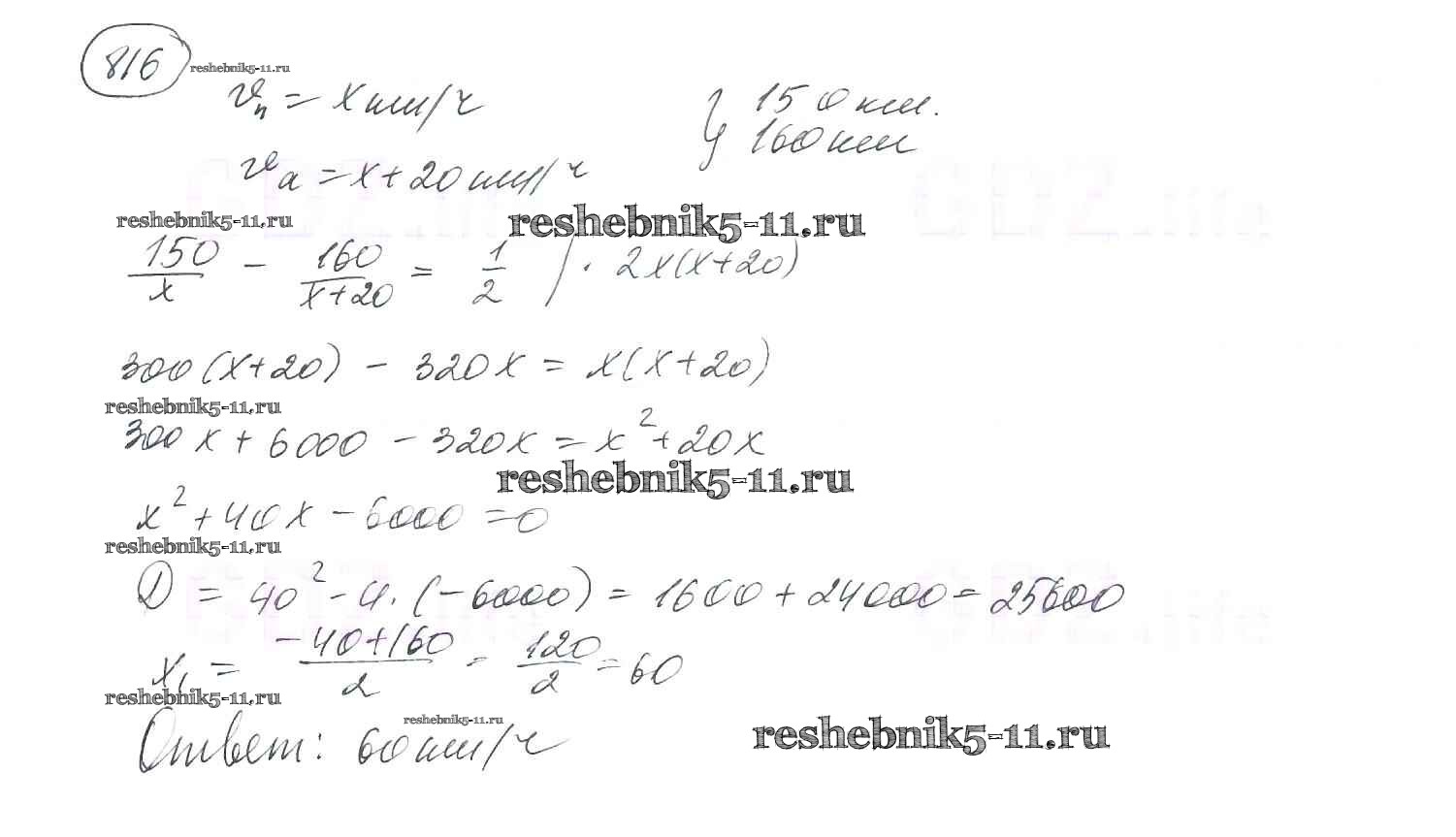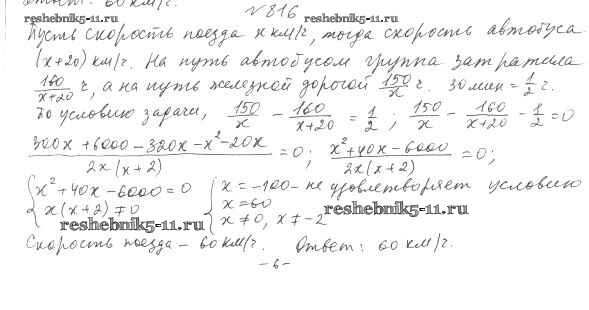 Готовая домашняя работа с ответами по Алгебре за 8 класс Мерзляк, Полонский, Якир Учебник Алгоритм успеха Вентана-граф 2016 ФГОС - §24. Рациональные уравнения как математические модели реальных ситуаций 816