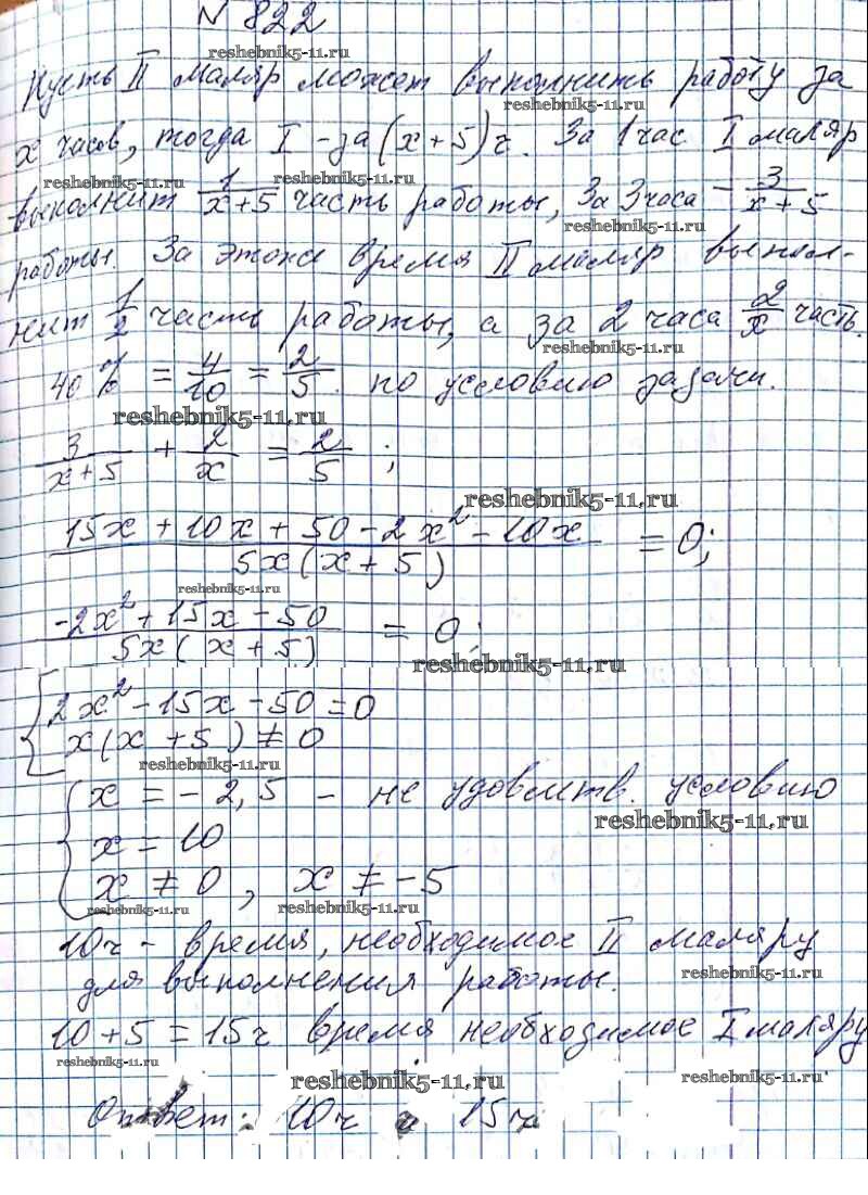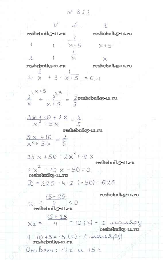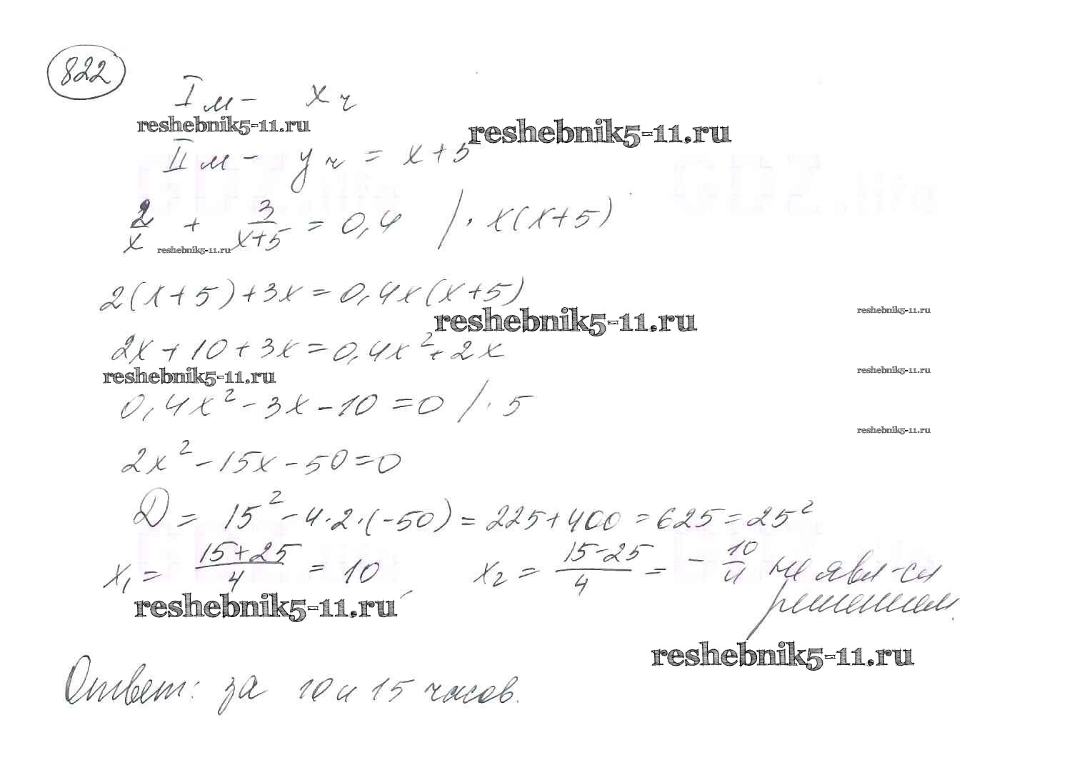 Готовая домашняя работа с ответами по Алгебре за 8 класс Мерзляк, Полонский, Якир Учебник Алгоритм успеха Вентана-граф 2016 ФГОС - §24. Рациональные уравнения как математические модели реальных ситуаций 822