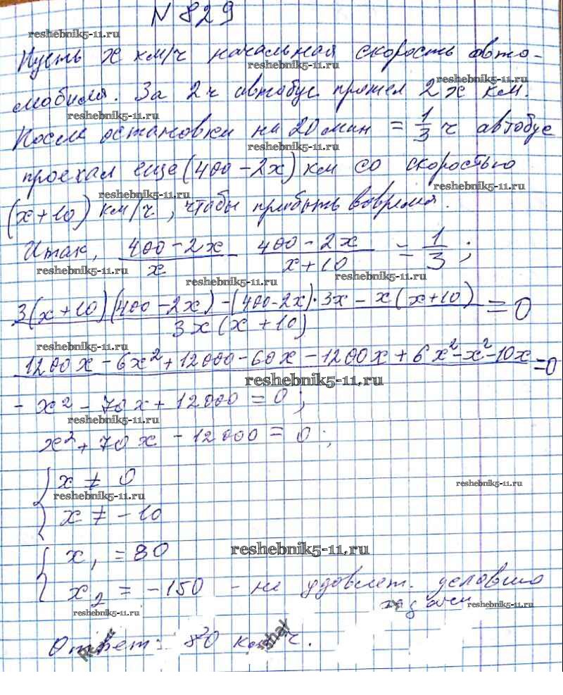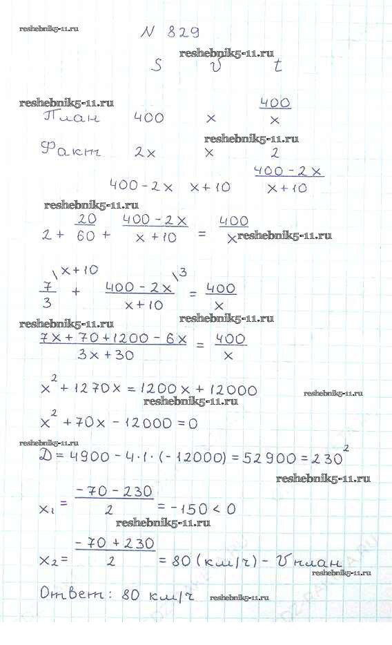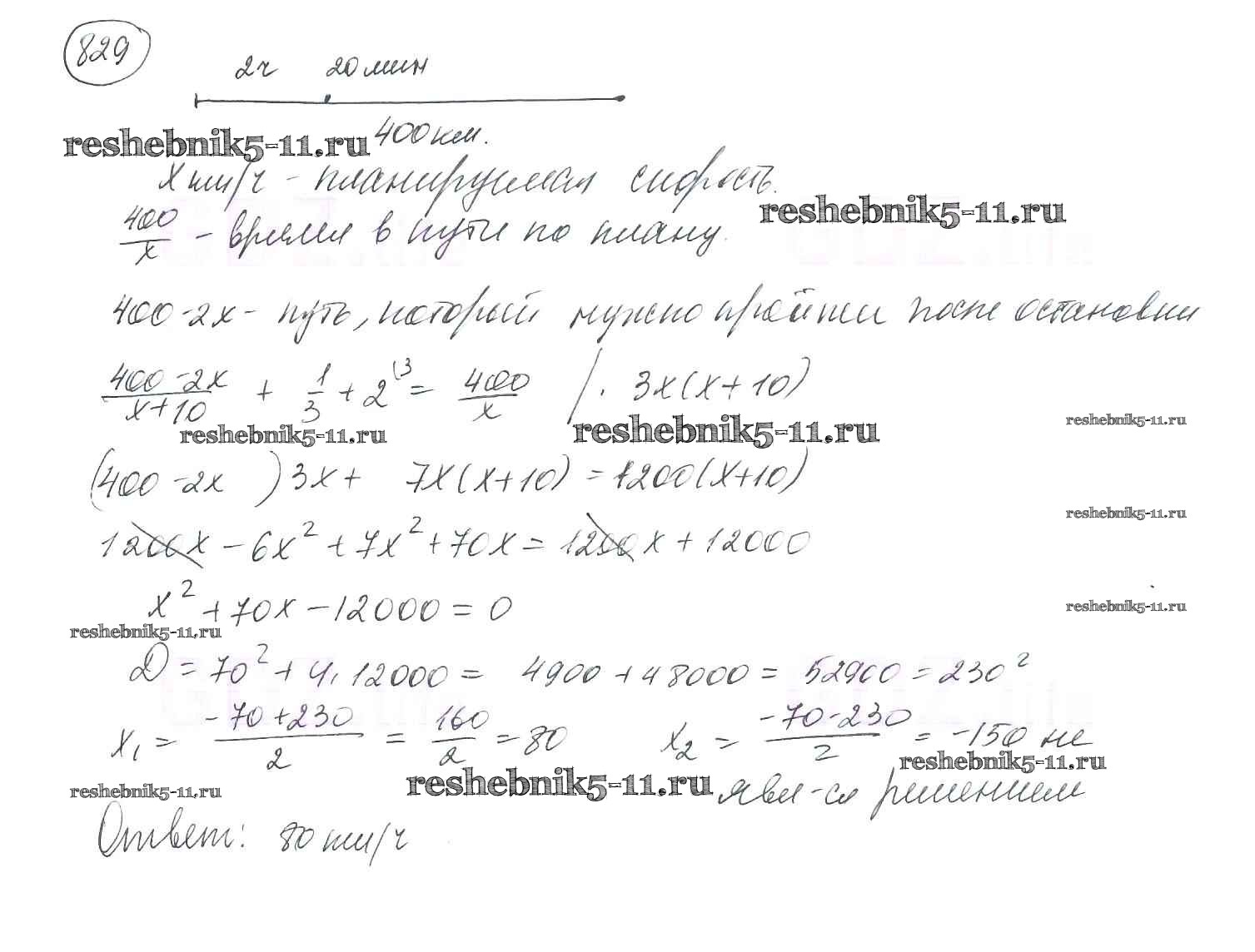 Готовая домашняя работа с ответами по Алгебре за 8 класс Мерзляк, Полонский, Якир Учебник Алгоритм успеха Вентана-граф 2016 ФГОС - §24. Рациональные уравнения как математические модели реальных ситуаций 829