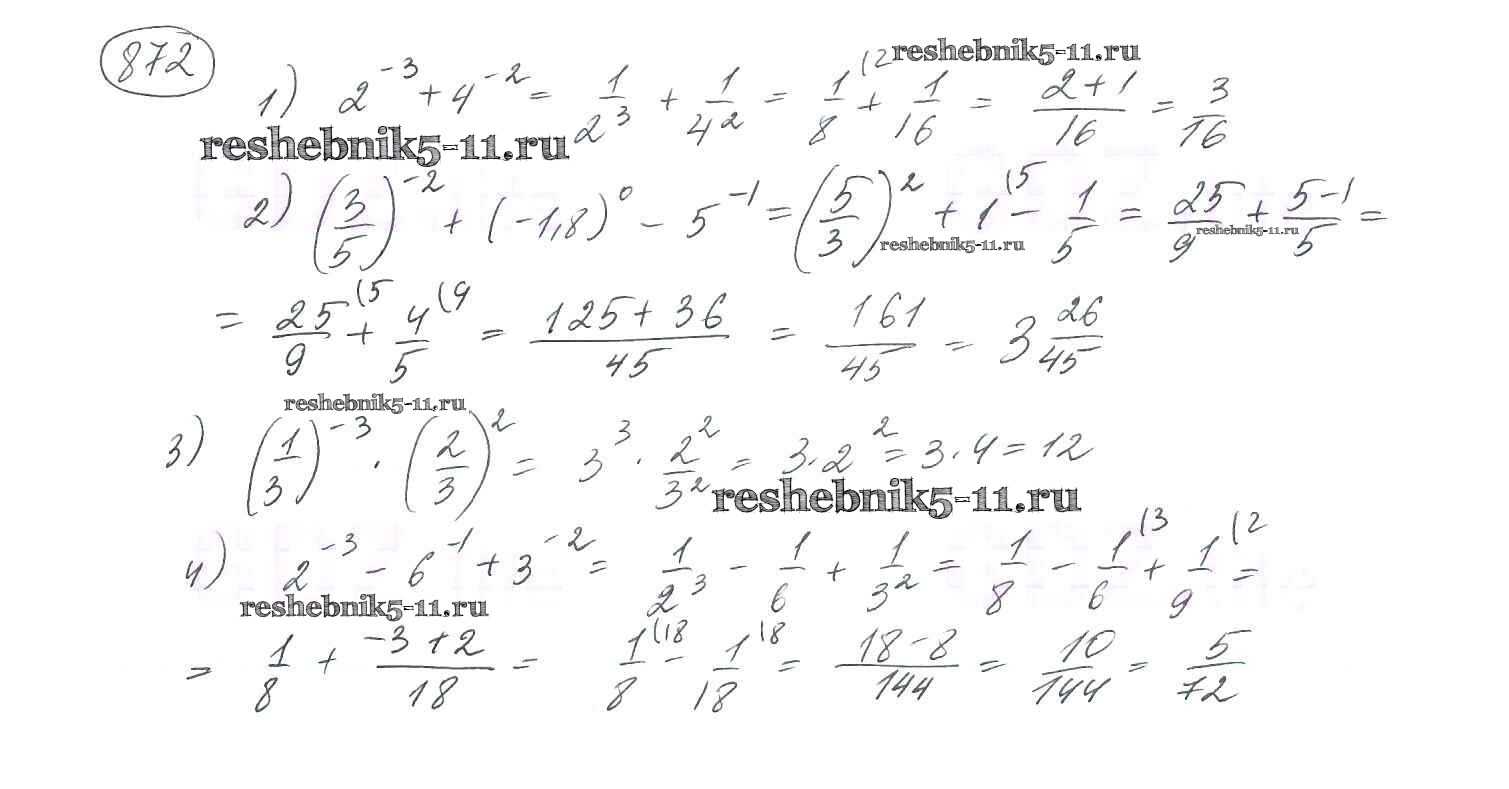 Готовая домашняя работа с ответами по Алгебре за 8 класс Мерзляк, Полонский, Якир Учебник Алгоритм успеха Вентана-граф 2016 ФГОС - Упражнения для повторения курса алгебры 8 класса 872