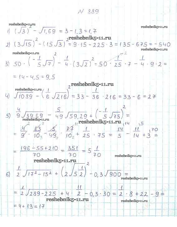 Готовая домашняя работа с ответами по Алгебре за 8 класс Мерзляк, Полонский, Якир Учебник Алгоритм успеха Вентана-граф 2016 ФГОС - Упражнения для повторения курса алгебры 8 класса 889