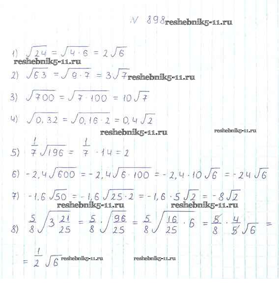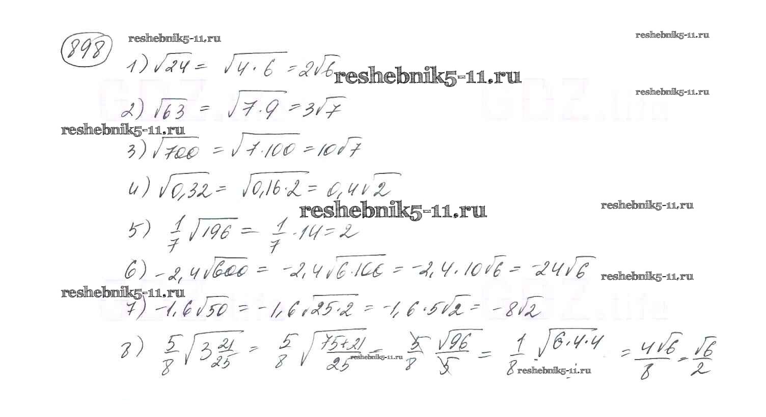 Готовая домашняя работа с ответами по Алгебре за 8 класс Мерзляк, Полонский, Якир Учебник Алгоритм успеха Вентана-граф 2016 ФГОС - Упражнения для повторения курса алгебры 8 класса 898