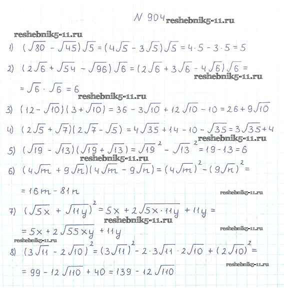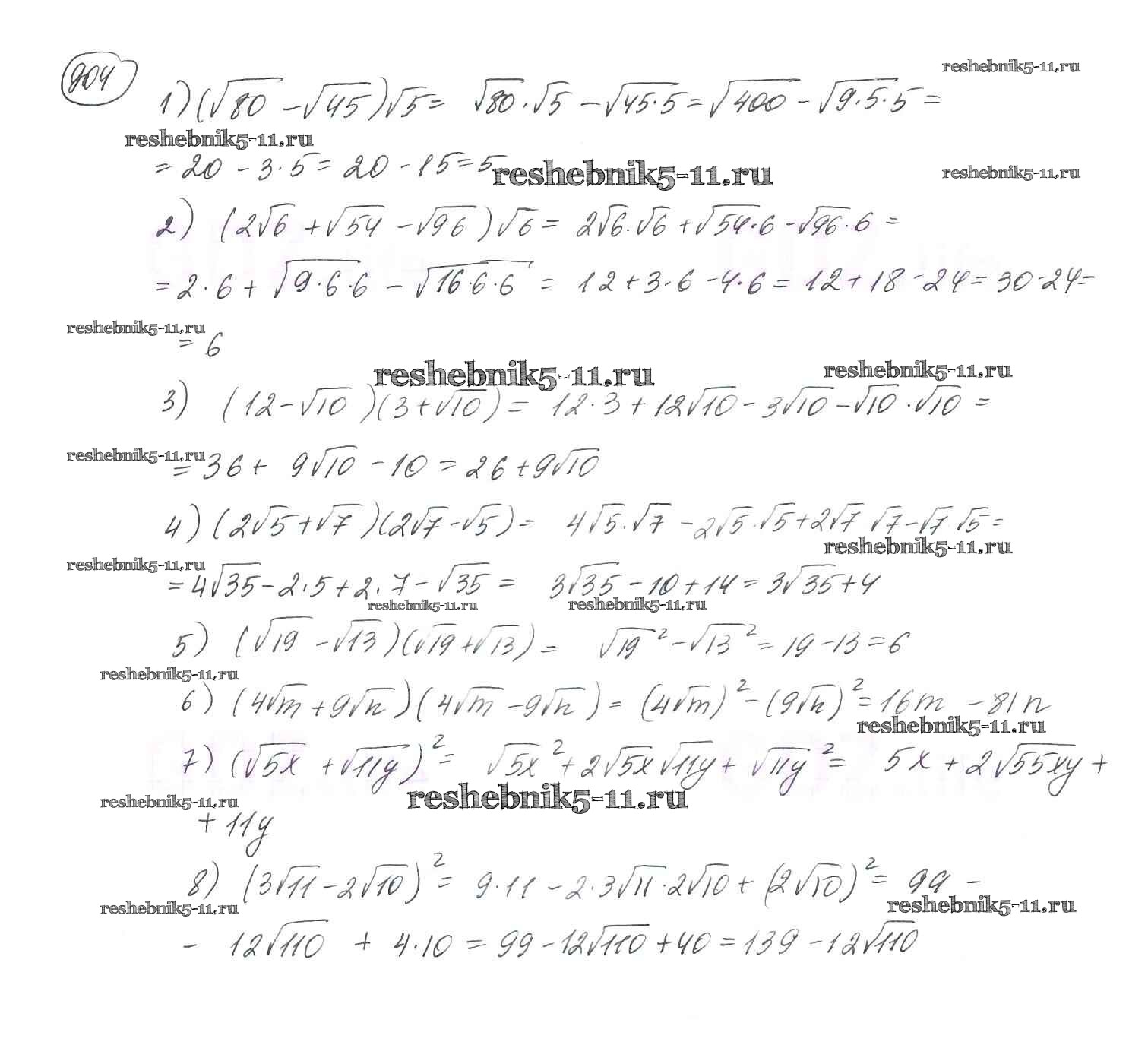 Готовая домашняя работа с ответами по Алгебре за 8 класс Мерзляк, Полонский, Якир Учебник Алгоритм успеха Вентана-граф 2016 ФГОС - Упражнения для повторения курса алгебры 8 класса 904