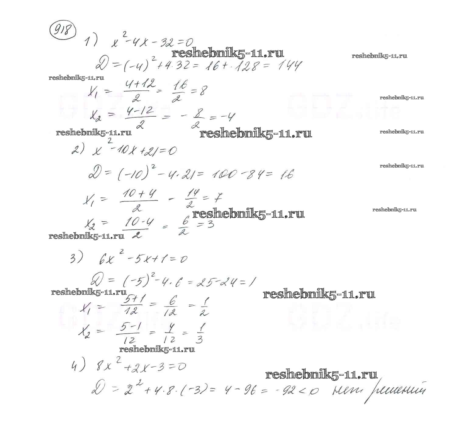 Готовая домашняя работа с ответами по Алгебре за 8 класс Мерзляк, Полонский, Якир Учебник Алгоритм успеха Вентана-граф 2016 ФГОС - Упражнения для повторения курса алгебры 8 класса 918