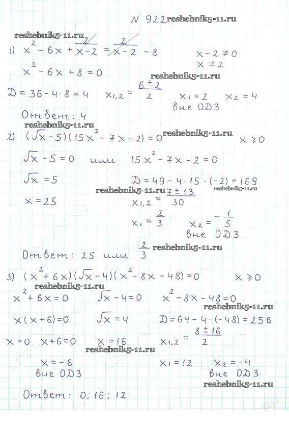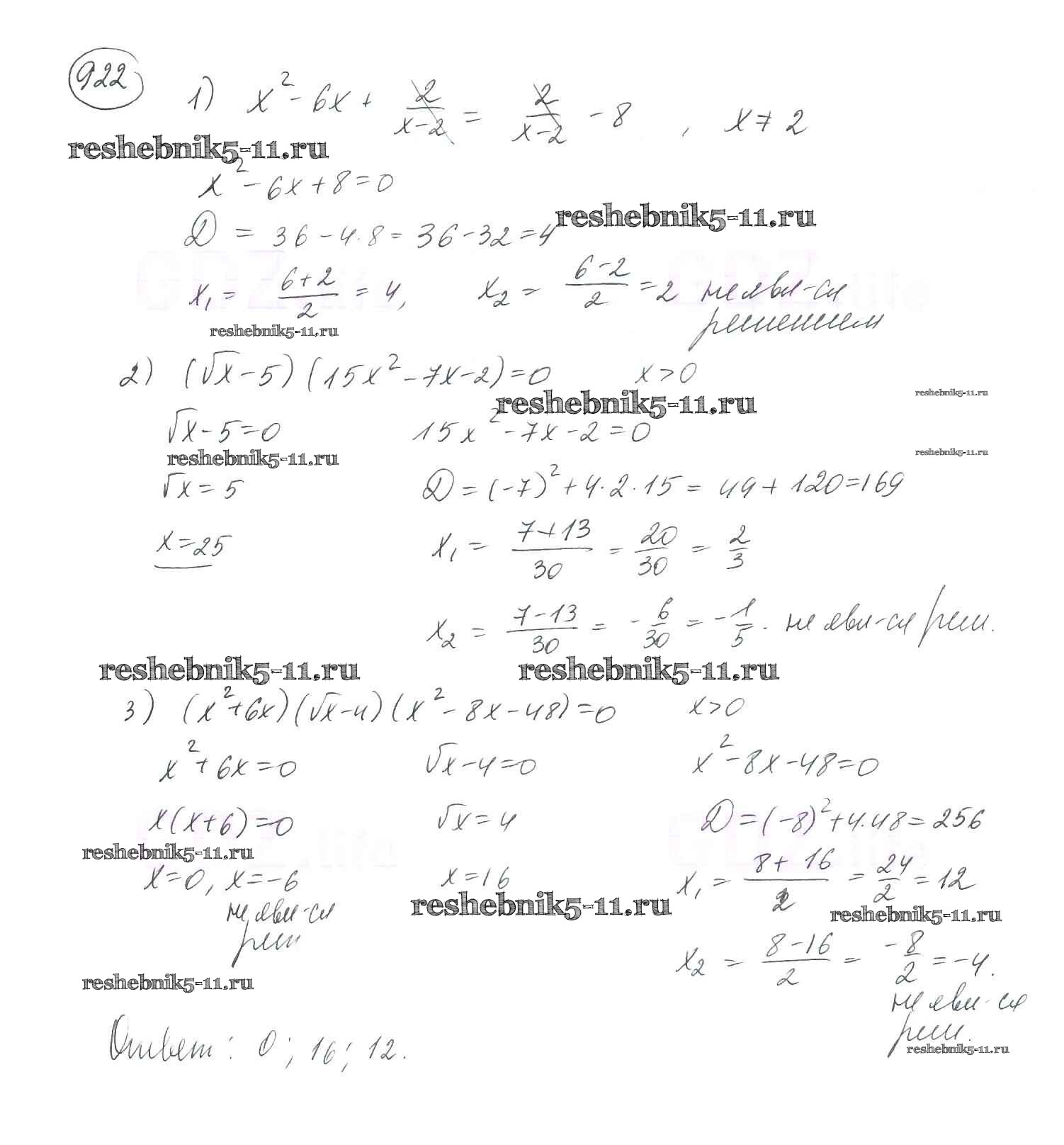 Готовая домашняя работа с ответами по Алгебре за 8 класс Мерзляк, Полонский, Якир Учебник Алгоритм успеха Вентана-граф 2016 ФГОС - Упражнения для повторения курса алгебры 8 класса 922
