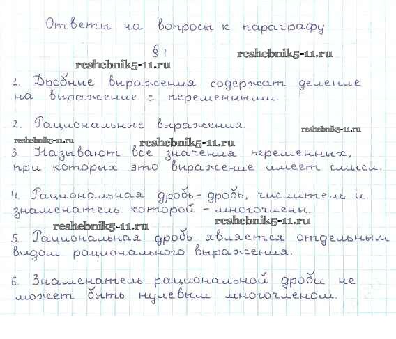 Готовая домашняя работа с ответами по Алгебре за 8 класс Мерзляк, Полонский, Якир Учебник Алгоритм успеха Вентана-граф 2016 ФГОС - Вопросы к параграфу §1