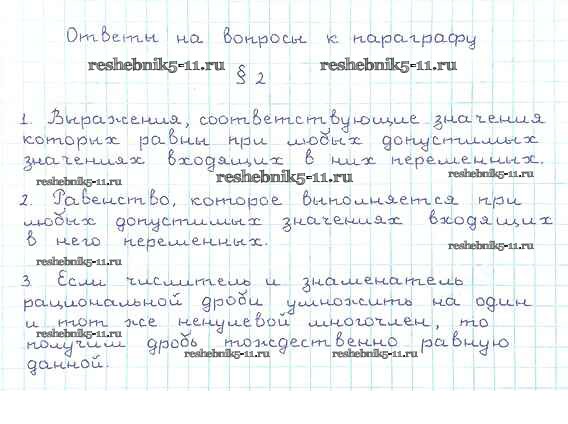Готовая домашняя работа с ответами по Алгебре за 8 класс Мерзляк, Полонский, Якир Учебник Алгоритм успеха Вентана-граф 2016 ФГОС - Вопросы к параграфу §2