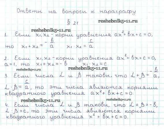 Готовая домашняя работа с ответами по Алгебре за 8 класс Мерзляк, Полонский, Якир Учебник Алгоритм успеха Вентана-граф 2016 ФГОС - Вопросы к параграфу §21