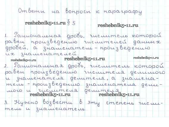 Готовая домашняя работа с ответами по Алгебре за 8 класс Мерзляк, Полонский, Якир Учебник Алгоритм успеха Вентана-граф 2016 ФГОС - Вопросы к параграфу §5