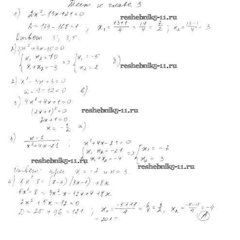 Готовая домашняя работа с ответами по Алгебре за 8 класс Дорофеев, Суворова, Бунимович Учебник Просвещение 2014 ФГОС - Тесты тест к главе 3