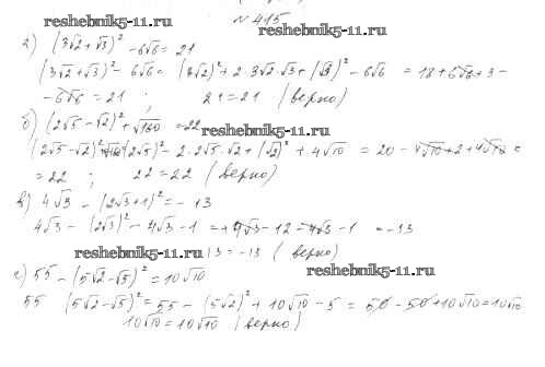 Готовая домашняя работа с ответами по Алгебре за 8 класс Дорофеев, Суворова, Бунимович Учебник Просвещение 2014 ФГОС - Упражнения 415