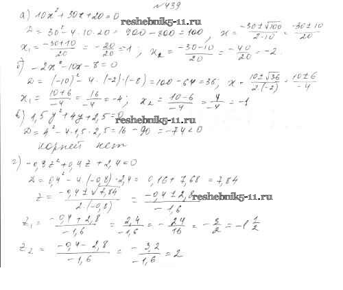 Готовая домашняя работа с ответами по Алгебре за 8 класс Дорофеев, Суворова, Бунимович Учебник Просвещение 2014 ФГОС - Упражнения 439