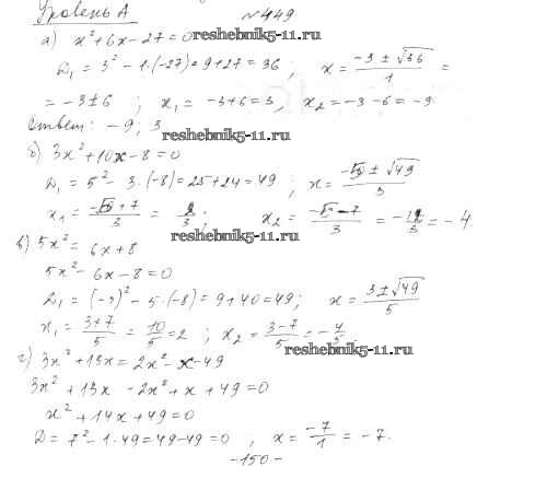 Готовая домашняя работа с ответами по Алгебре за 8 класс Дорофеев, Суворова, Бунимович Учебник Просвещение 2014 ФГОС - Упражнения 449
