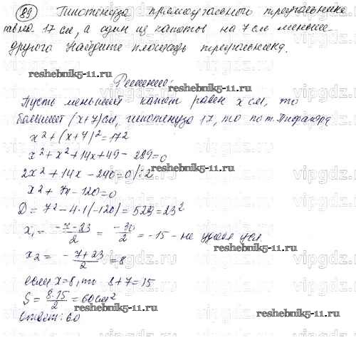 Готовая домашняя работа с ответами по Алгебре за 8 класс Мордкович Задачник УМК Углубленный уровень Часть 1, 2 Мнемозина 2016 ФГОС - Задания для повторения 89
