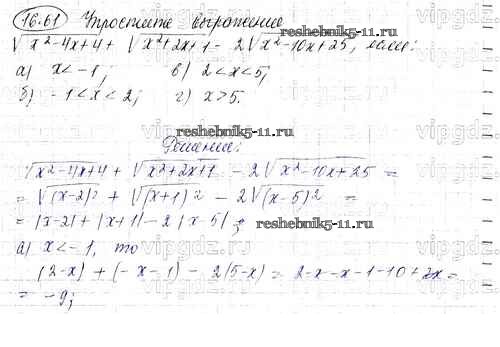 Готовая домашняя работа с ответами по Алгебре за 8 класс Мордкович Задачник УМК Углубленный уровень Часть 1, 2 Мнемозина 2016 ФГОС - Параграф 16 61