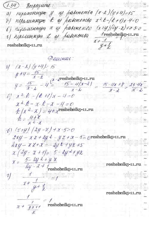 Готовая домашняя работа с ответами по Алгебре за 8 класс Мордкович Задачник УМК Углубленный уровень Часть 1, 2 Мнемозина 2016 ФГОС - Параграф 1 34